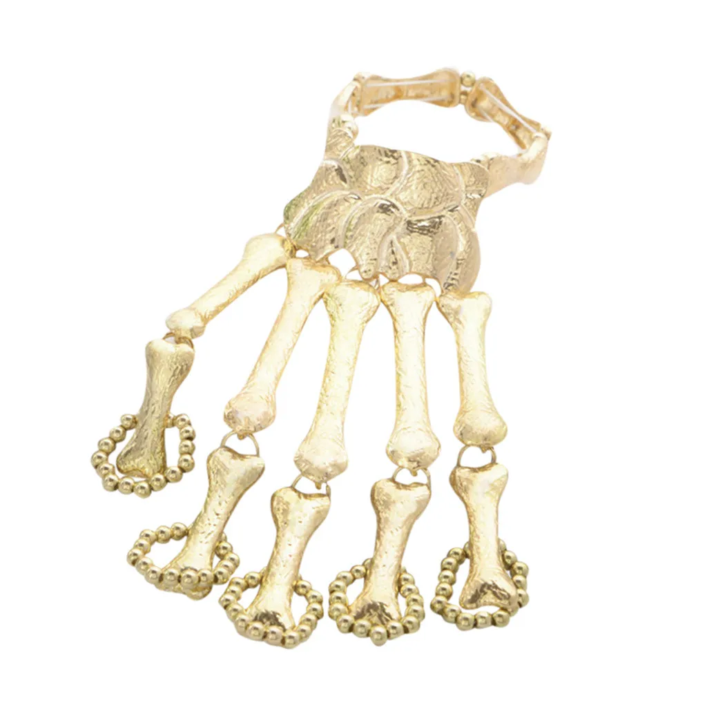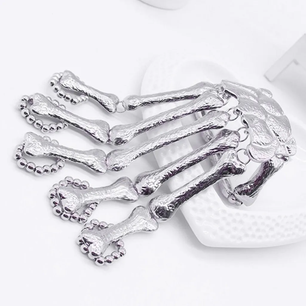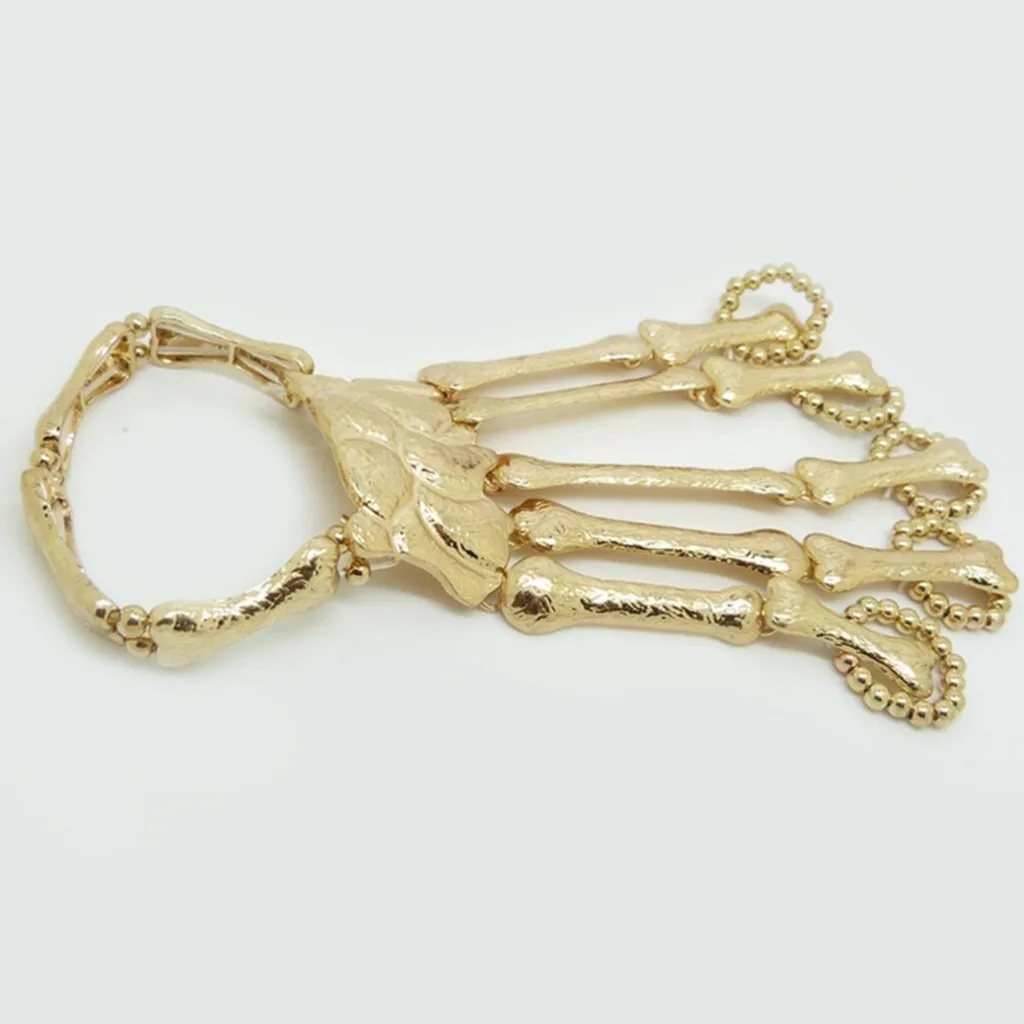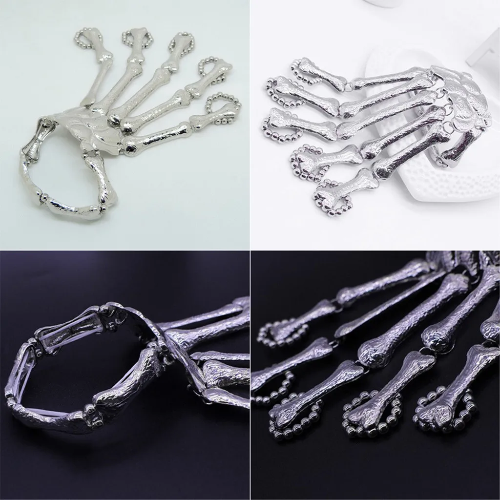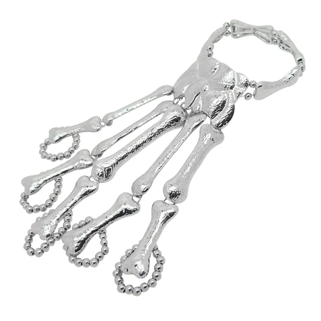 Хэллоуин реквизит подарок Ночной клуб вечерние панк браслет, соединенный с кольцом на пальце Готический Череп Скелет