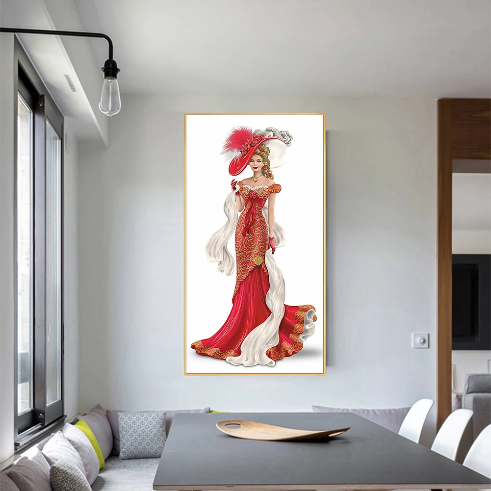 5D DIY Алмазная картина красное платье Леди Полный Круглый дрель мозаика настенная картина стразы украшение для дома
