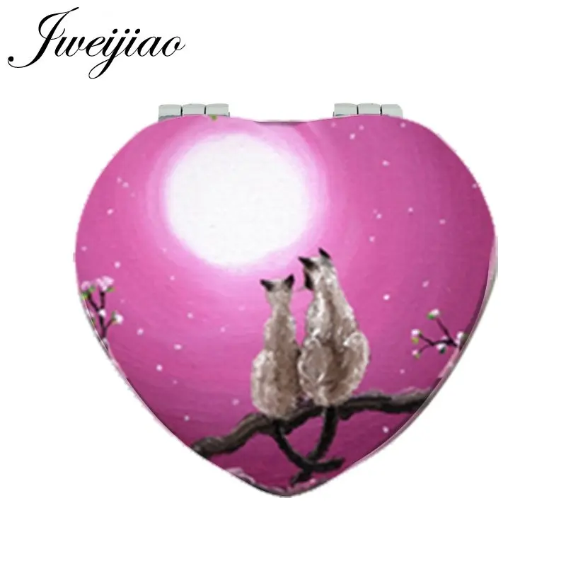 Youhaken любовь Луна кошки сердце карманное зеркало из искусственной кожи мини компактное складное 1x/2x увеличительное зеркало для макияжа для влюбленных