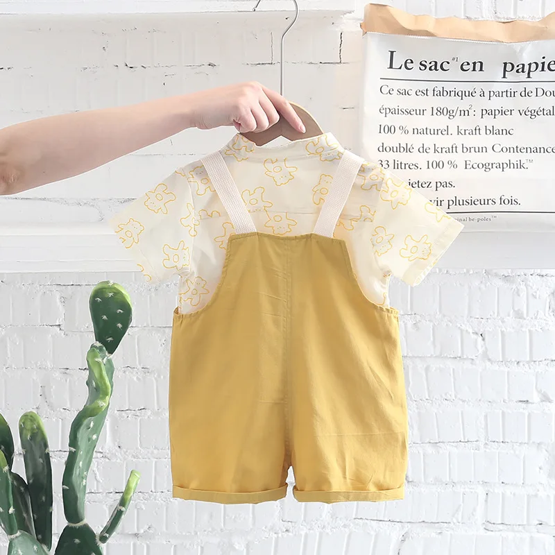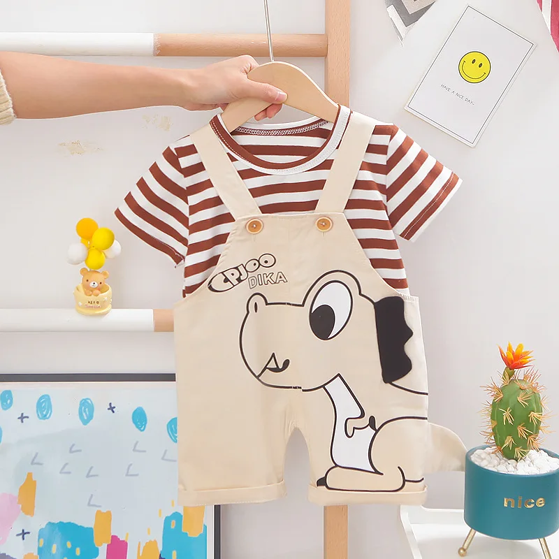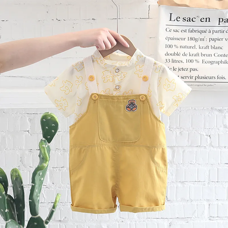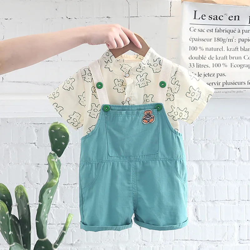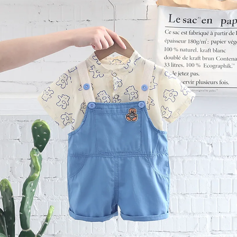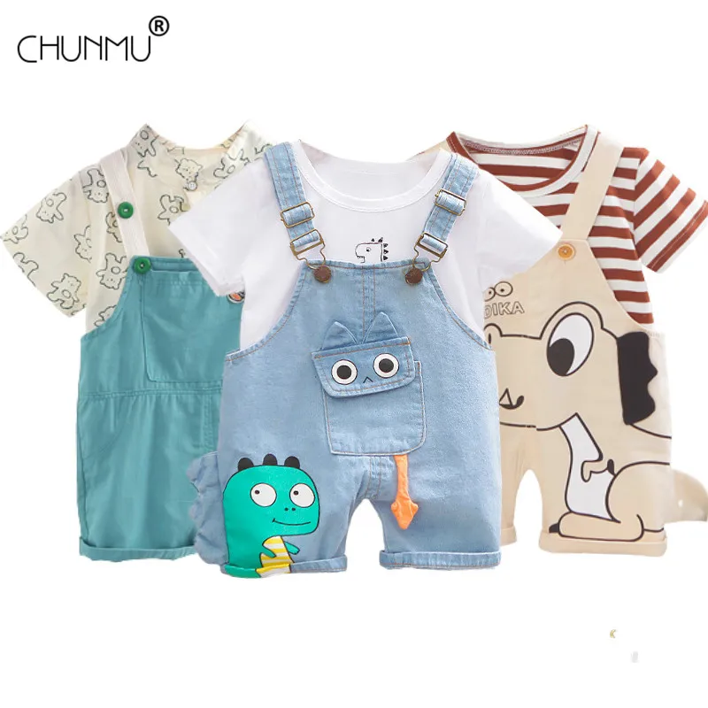Одежда для маленьких мальчиков летняя детская одежда топ + джинсовый комбинезон комплект одежды из 2 предметов Детские костюмы для мальчиков, комплекты одежды