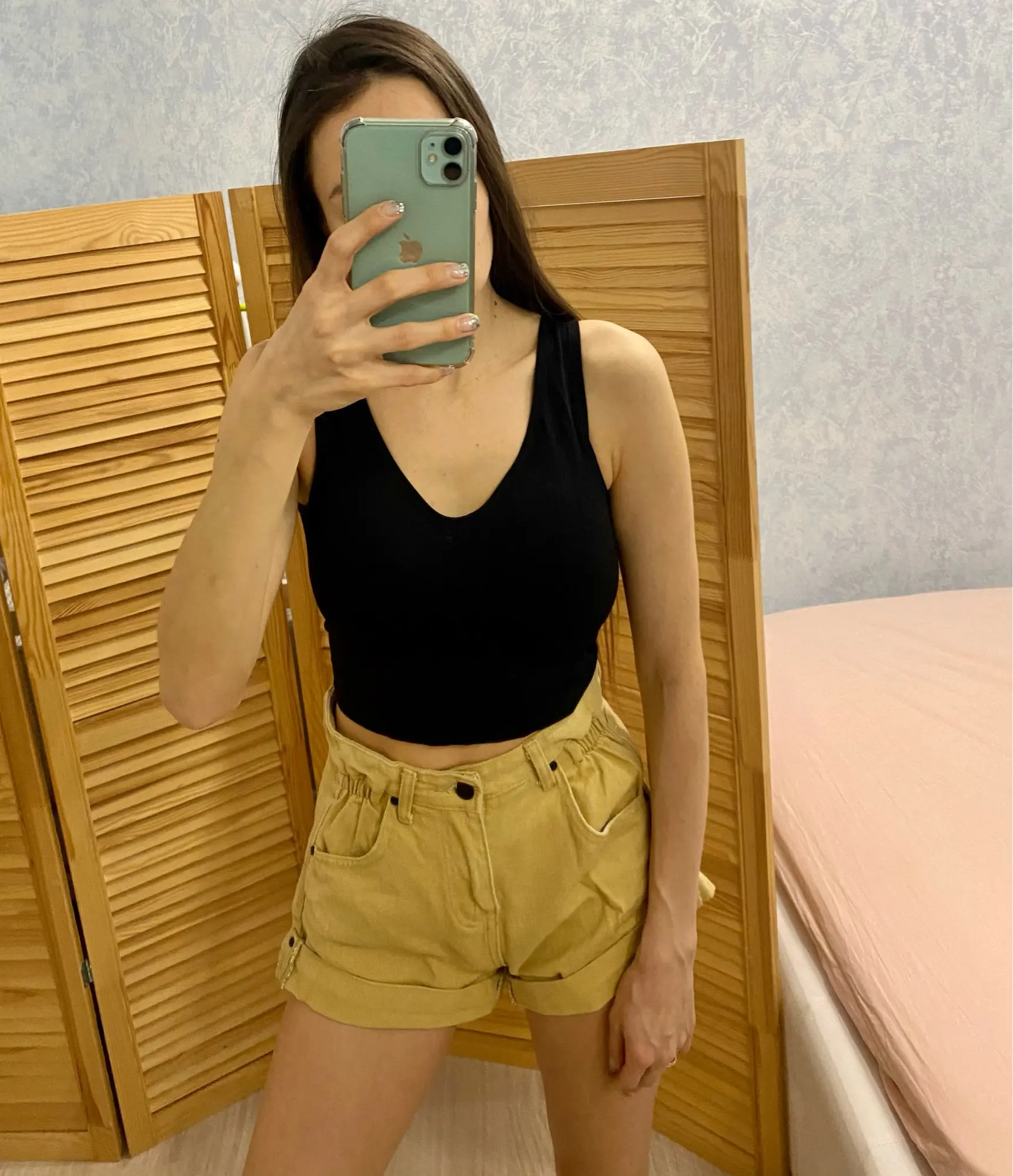 Классный топ. Ткань плотная, эластичная. Чашки встроены. На фигуре сидит отлично. На рус 42 идеально подходит. Качество отличное. Доставка в Россию 2 недели.