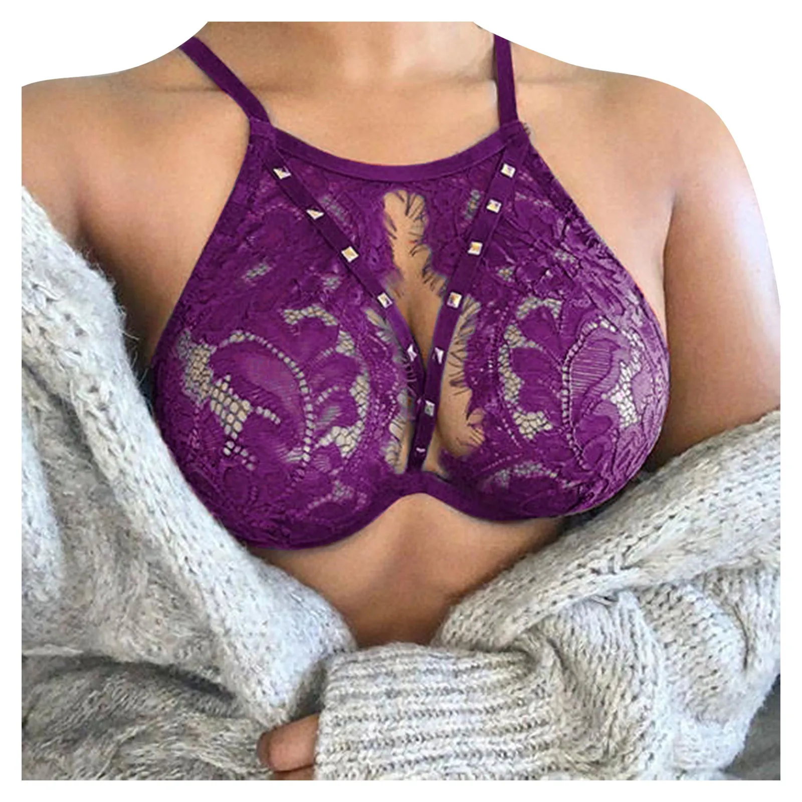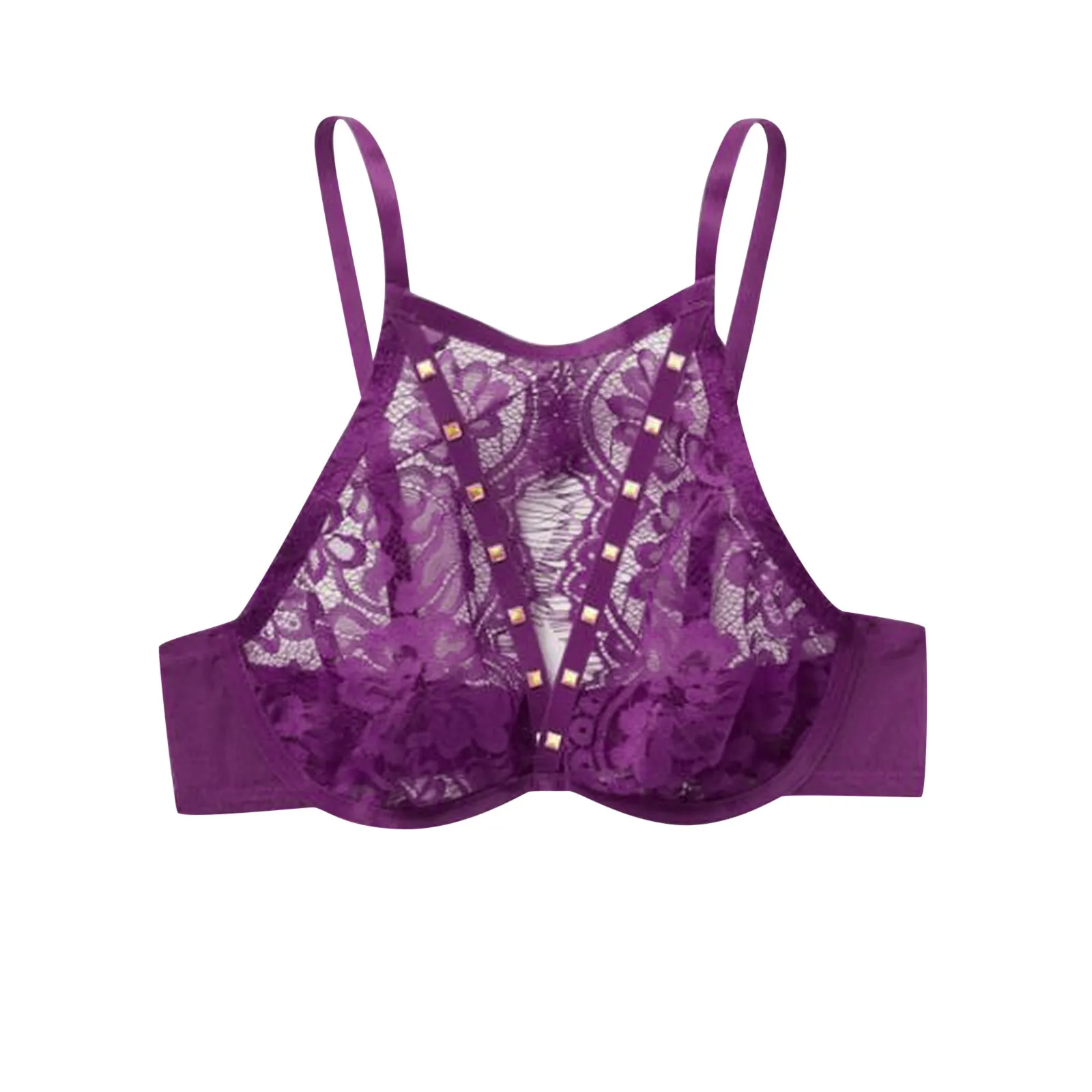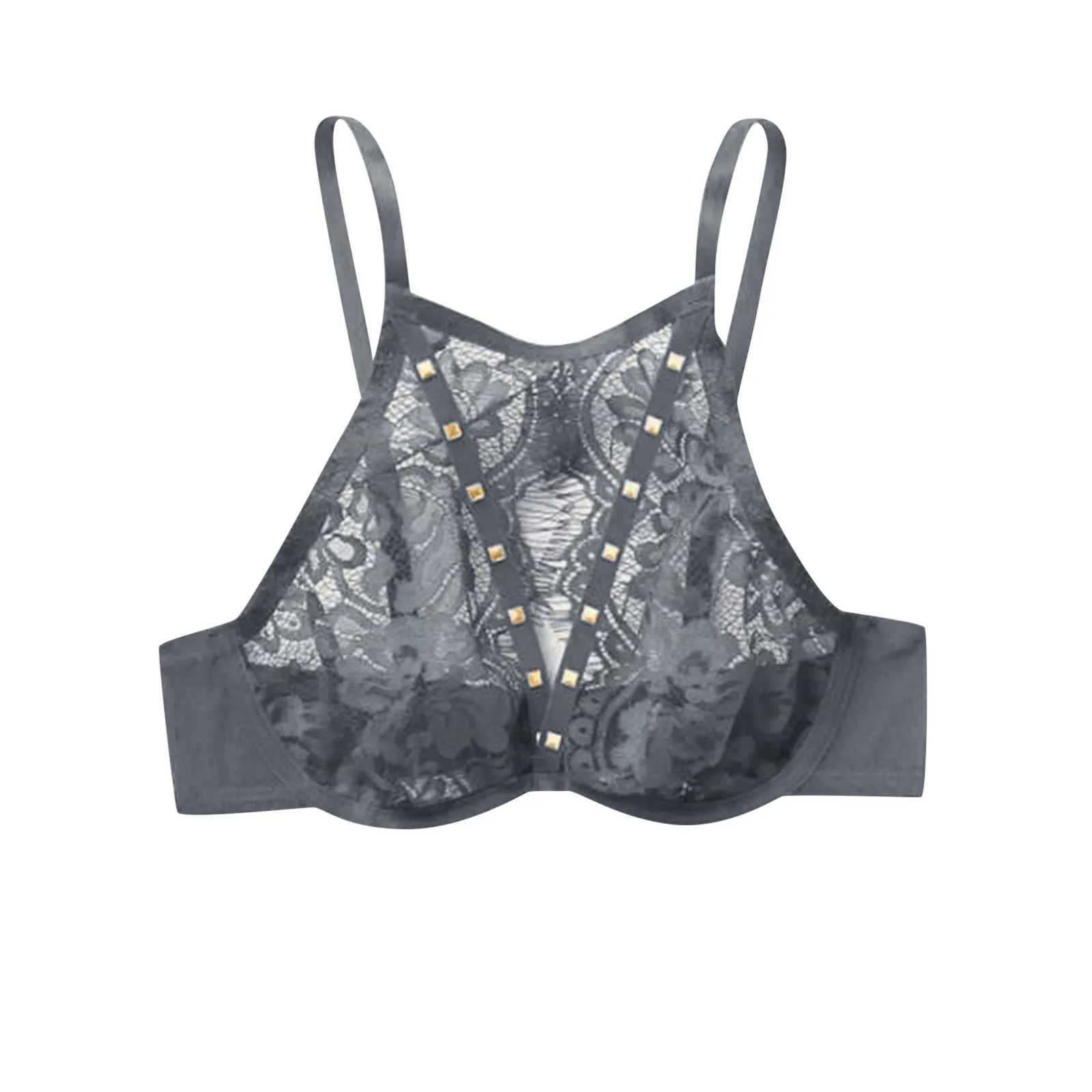 Женское пикантное нижнее белье, однотонный ажурный кружевной бюстгальтер, Бралетт с заклепками, женское однотонное нижнее белье, топы, женский бюстгальтер