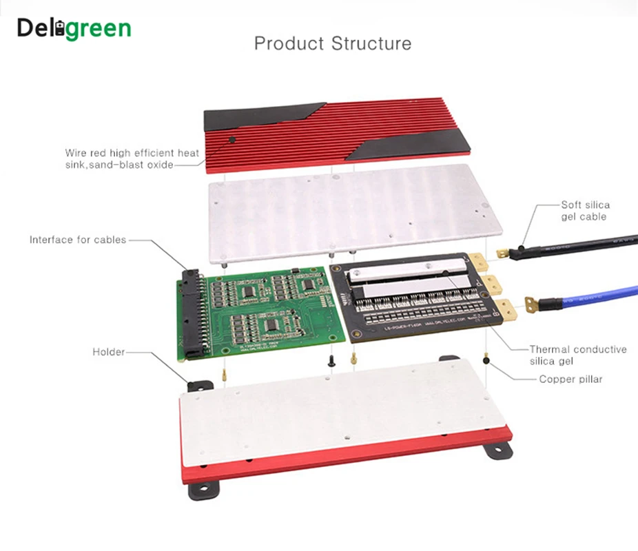 Deligreen LiFePO4 BMS 24S 80A 100A 120A 150A 200A 250A 72В BMS для LiFePO4 аккумуляторной батареи с функцией балансировки, водонепроницаемый IP67