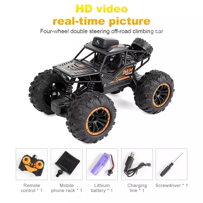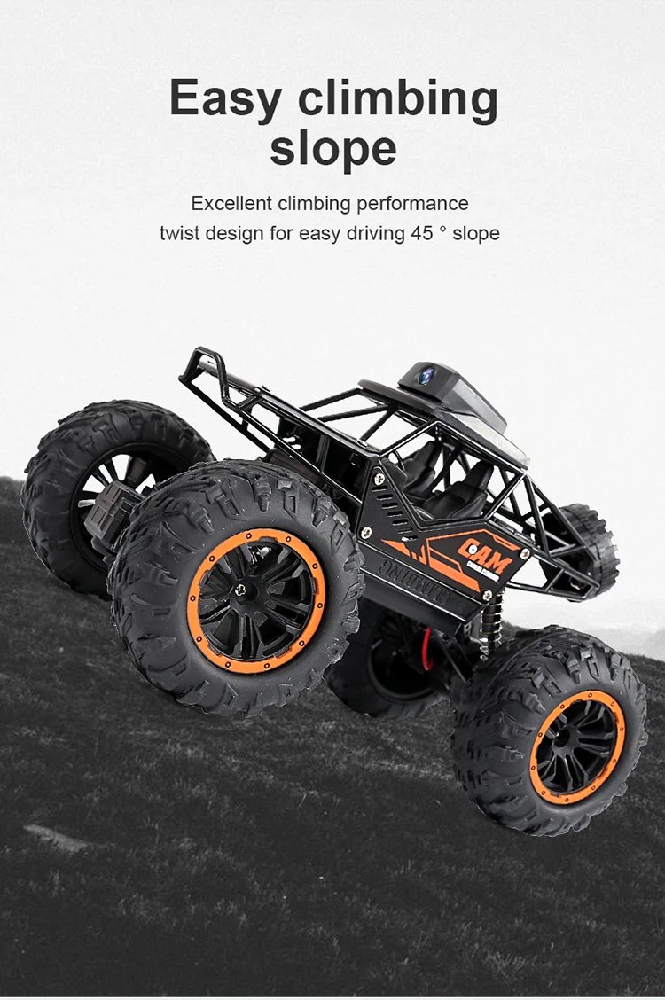 Особенности Беспроводной пульт дистанционного управления с диапазоном частот 2,4G, защита от помех может управляться независимо несколькими устройствами, Корпус с легированной рамой, амортизирующие пружины и внедорожные шины, имитация пропорциональных моделей Адаптируется к большинству местностей сцены. Он оснащен модулем камеры 720, который может осуществлять возврат видео и управление интерфейсом мобильный телефон с помощью приложения. Видео и изображения хранятся в Мобильный телефон и можно посмотреть в любое время. Функция: вперед, назад, влево, вправо. Wi-Fi камера в реальном времени, дистанционное управление через приложение Преимущества: модульная батарея, песочный рисунок с дистанционным управлением, очень удобно Описание: Название продукта: альпинистская машина с камерой FPV Соотношение размеров: 1:18 Цвет продукта: черный, оранжевый Параметры аккумулятора: 3,7 в, 500 мАч Срок службы: 20 минут Время зарядки: 90 минут Батарея дистанционного управления: AA * 2 (не входит в комплект) Дистанция управления: 30-50 метров Конфигурация пикселя: 2MP 1280*720P Дальность передачи изображения: 30 метров Материал: АБС-пластик/оборудование/электронные компоненты Частота Wi-Fi: 2,4 ГГц Посылка Внедорожник с дистанционным управлением * 1 Пульт дистанционного управления * 1 Аккумулятор 3,7 в 500 мАч * 1 USB-кабель для зарядки * 1 Отвертка * 1 Мобильный телефон подставка * 1 Руководство пользователя * 1