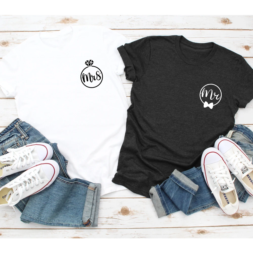 Mr и Mrs подходящая для пары подвеска, футболка с карманом 100% хлопок подарок ко Дню Святого Валентина Футболка для женщин унисекс Графические футболки для медового месяца Топы