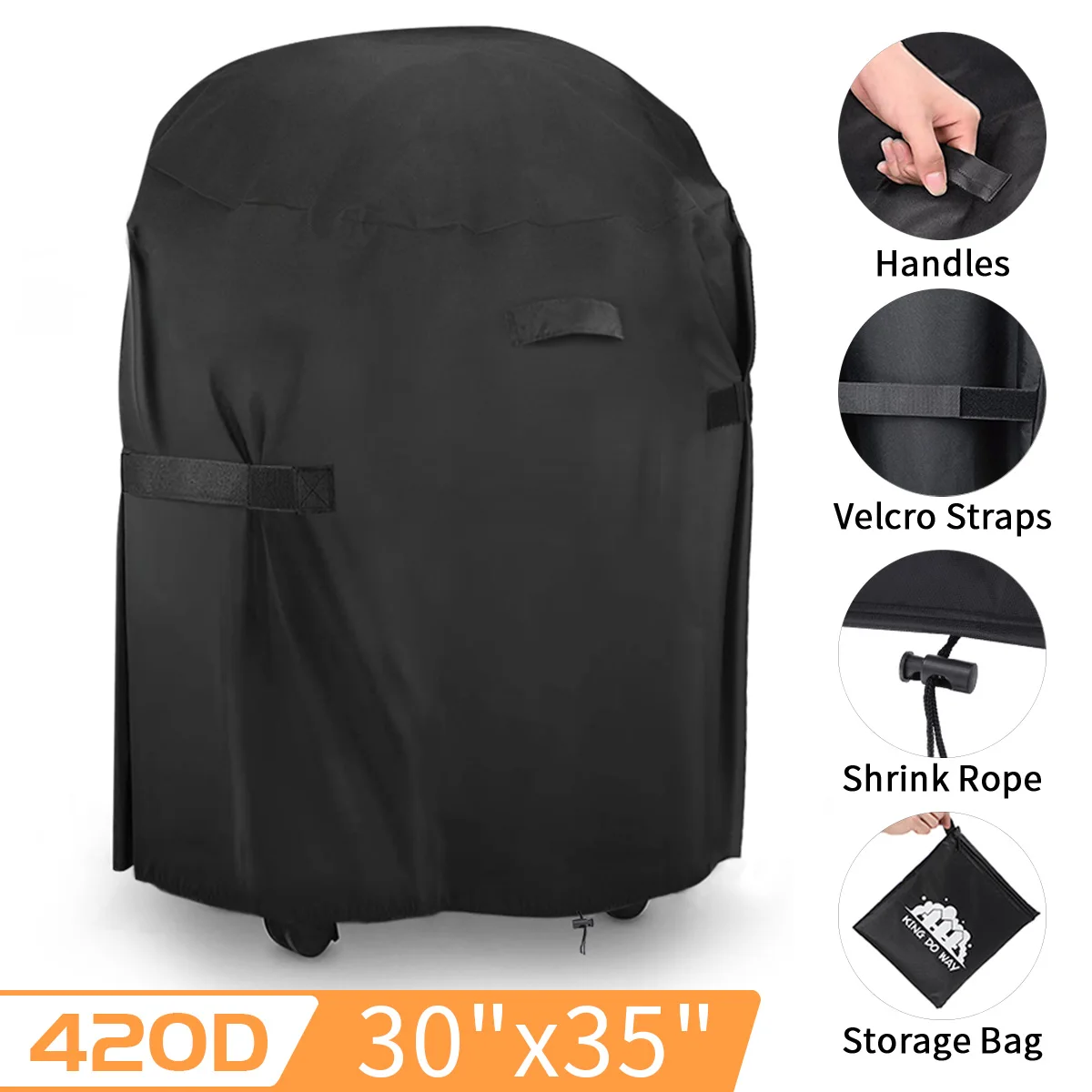 Посылка включает в себя:1x крышка для гриля для барбекю1x сумка для храненияОсобенности товара:Цвет: черныйРазмер:-77x90 см/30,3x35,4 дюймов-183x66x130 см/72x26x51,2 дюймовМатериал: 420D Оксфорд полиэстерОсобенности:【Подходит для самых популярных брендов гриля 】: круглая крышка для барбекю для чайника Размеры: 77x90 см (30,3 ''x 35,4''), больший размер, чем большинство круглых Обложки с барбекю на рынке. Подходит для большинства брендов грилей, таких как Weber,Char Broil и т. д. Проверьте размеры гриля для правильной посадки.420420d Оксфордский Модернизированный водонепроницаемый материал 】: чехол для гриля изготовлен из высококачественной сверхпрочной полиэфирной ткани. Новая специальная устойчивая к выцветанию ткань, водоотталкивающая обработка, этот новый материал обладает превосходной цветостойкостью, устойчив к ультрафиолетовому излучению, эпилям и дождю, устойчив к разрывам и холодному растрескиванию, прочный и долговечный, обеспечивает круглогодичную защиту гриля от солнца, дождя, снега, града, ветра, пыли, грязи и т. д.【Усовершенствованная надежная ветрозащитная конструкция: прочная и хорошо фиксированная с большими ремешками, шнуровкой, 1 ветрозащитная пряжка. Не беспокойтесь о том, что крышка гриля выдувается при сильном ветре благодаря прикрепленным крючкам и петлям, которые помогут затянуть крышку. Кроме того, на кромке чехла для барбекю есть веревка с завязками. Вы можете отрегулировать длину по вашему желанию. Сверхмощный 1,5" Широкие крепежные ремни надежно крепятся и предотвращают скольжение или выдувание.【Устойчивость к разрыву и защита от ультрафиолета: Изготовлен из гидрофобного материала и с двойными скрепленными краями, с улучшенной двухниточной прошивкой, обеспечивает полную защиту крышки от растрескивания. Внутренний слой имеет серебряное покрытие, устойчивая к ультрафиолетовому излучению конструкция обеспечивает исключительную защиту под солнечным светом. Хорошо Защитите свой гриль от промокания, пыли, выцветания, ультрафиолетового облучения, огнестойкого, антивозрастного, легко Очищаемого, высокотемпературного сопротивления, Он не трескается в снежный день, а также хорошо защищает ваш гриль.Примечание:1. Допускается погрешность в 1-3 см из-за ручного измерения. Перед размещением заказа, пожалуйста, внимательно ознакомитесь со всеми условиями.2. Цвета могут отличаться, так как на дисплее разница, пожалуйста, поймите.