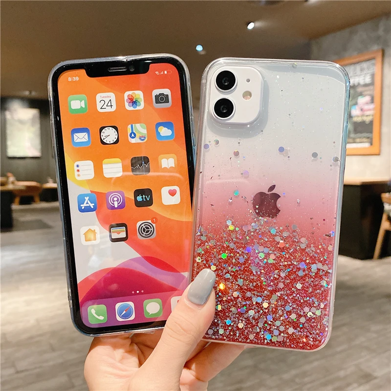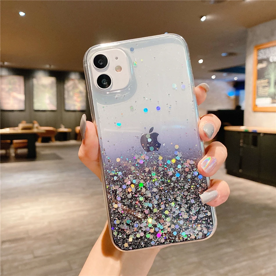 Прозрачный яркий блестящий чехол для телефона iPhone 11 12 Pro Max ...