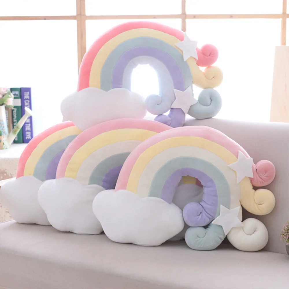 Плюшевые подушки в виде неба, яркие цвета, радуга, облако, звезда, ...