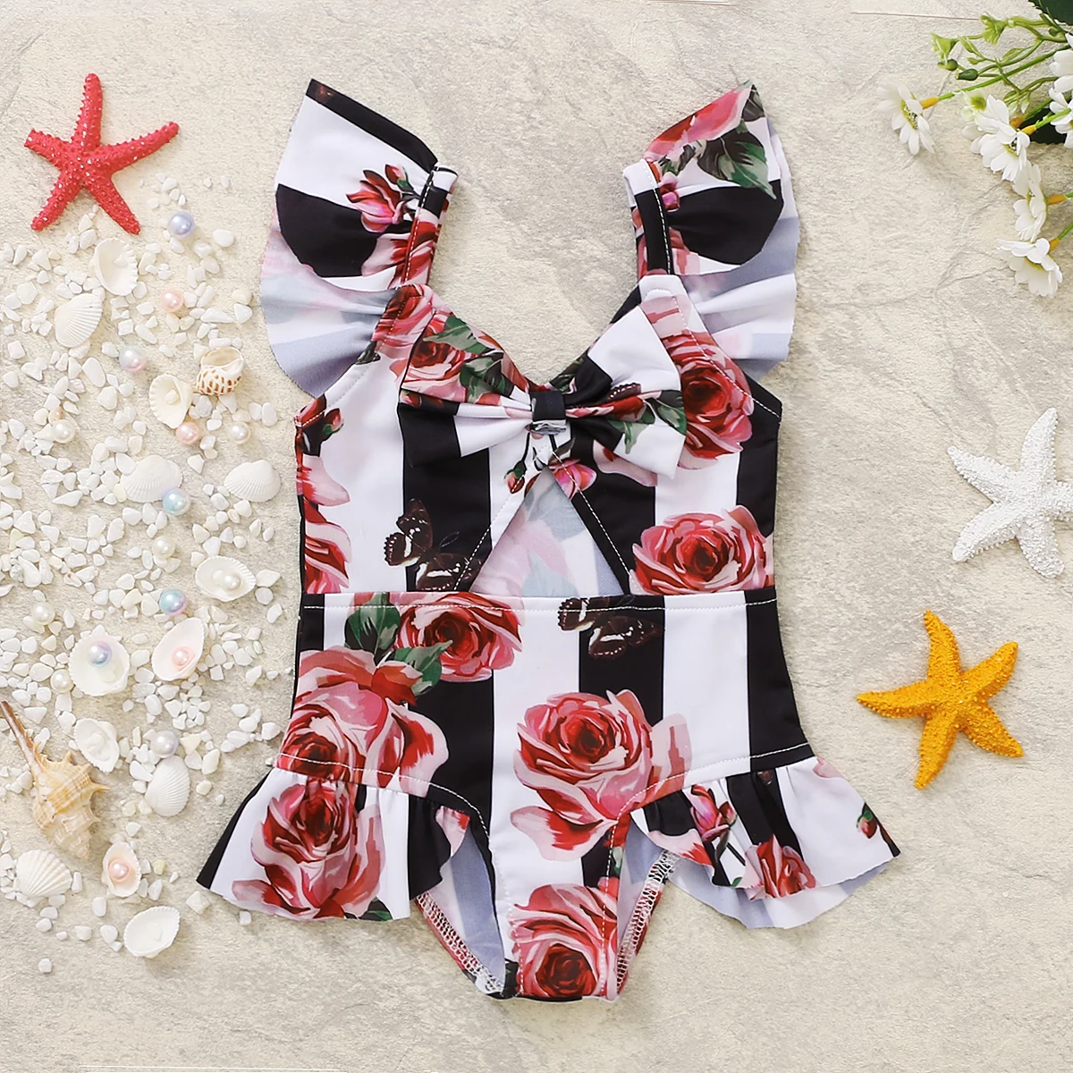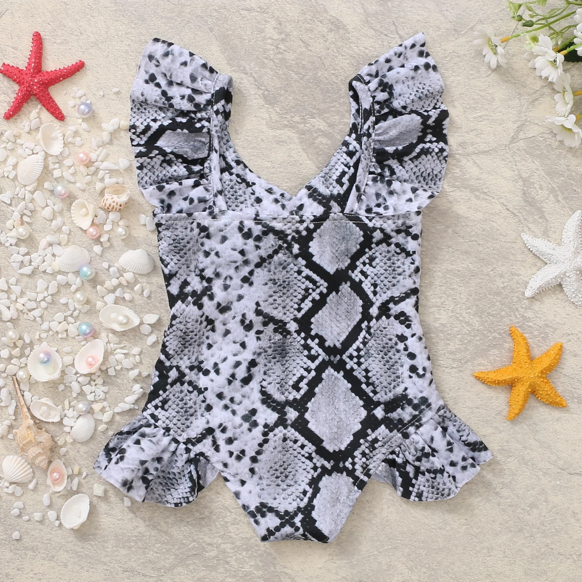 FOCUSNORM От 0 до 4 лет детской летней одежды для мальчиков и девочек, купальный костюм с цветочным и леопардовым принтом из змеиной кожи, с бантом, с проектом пляжный костюм