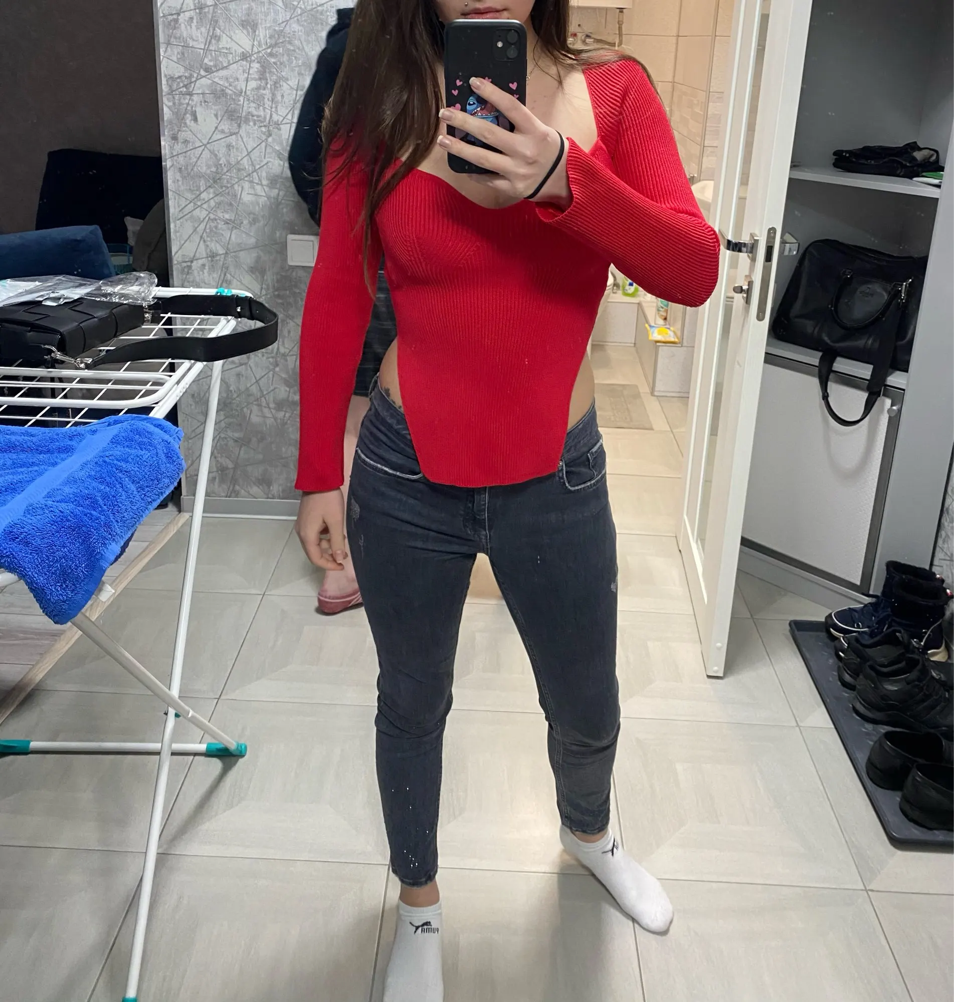 Красивая трикотажная кофта с глубоким декольте. Плотный материал, эластичный в меру, к телу приятный, не просвечивает. Смотрится стильно и эффектно ! Мои параметры 152см / 82-62-84 / 42кг. Подойдёт девушкам с размерами s-м, при росте до 165см. ПРИХОДИТЕ В МОЙ ИНСТАГРАМ И ТЕЛЕГРАМ (imenno_te) Там же можно посмотреть видео обзоры.