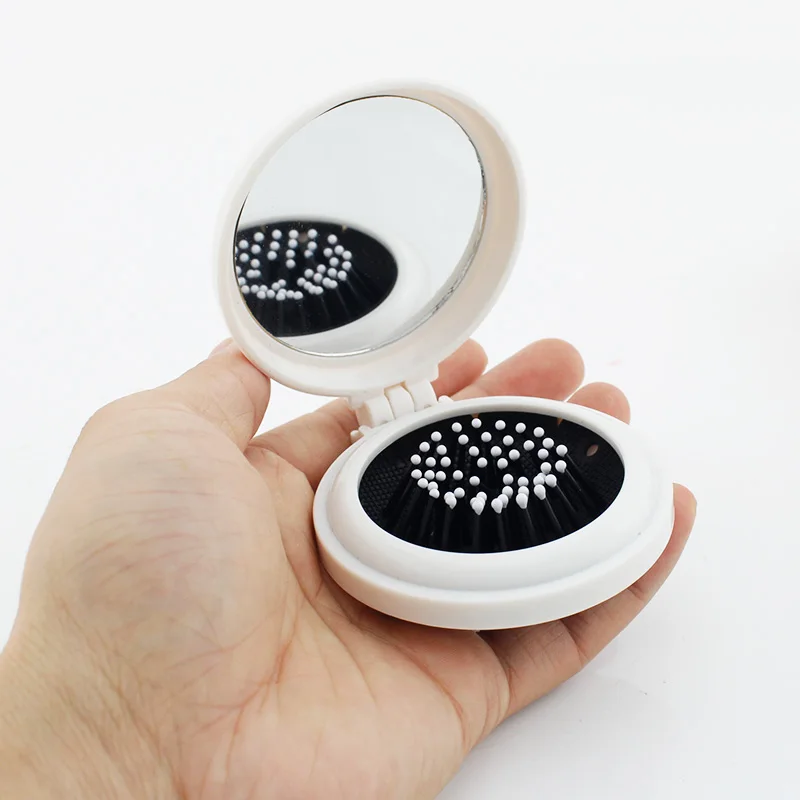 Складное карманное зеркало Youhaken с массажной расческой, белое пластиковое компактное портативное зеркало для макияжа NA01