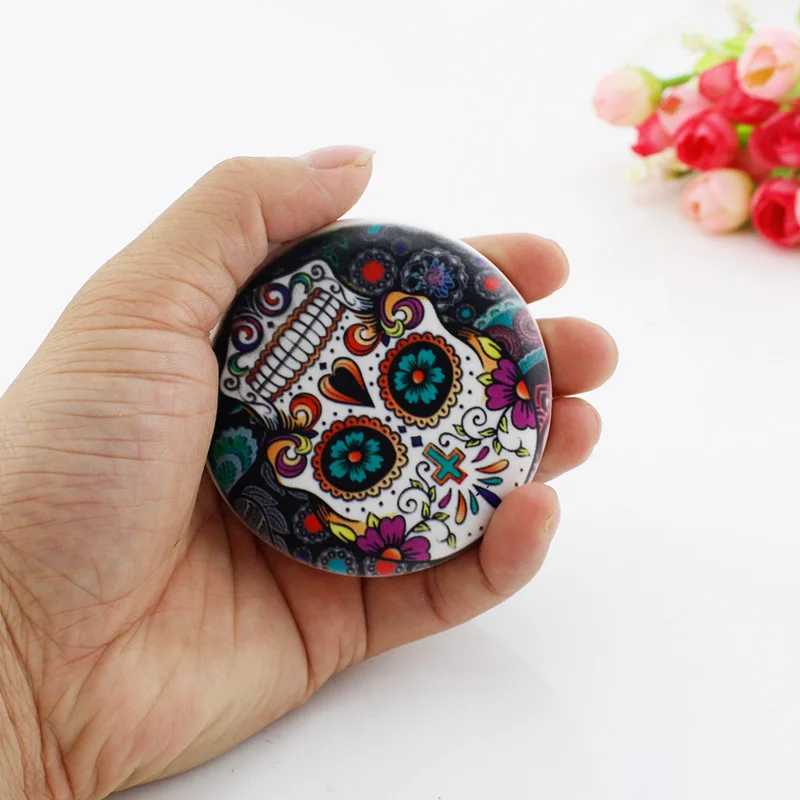 Характеристика:Карманное зеркалоВнешний размер: 65 мм (Диаметр) * 20 мм (THickness) прибл.Гребень зеркало:Одна сторона-плоское зеркало, другая сторона-Массажная расческа.Использование: для макияжа, для красоты, подарок для друга, для свадебных подарков.Фотографии товаров: