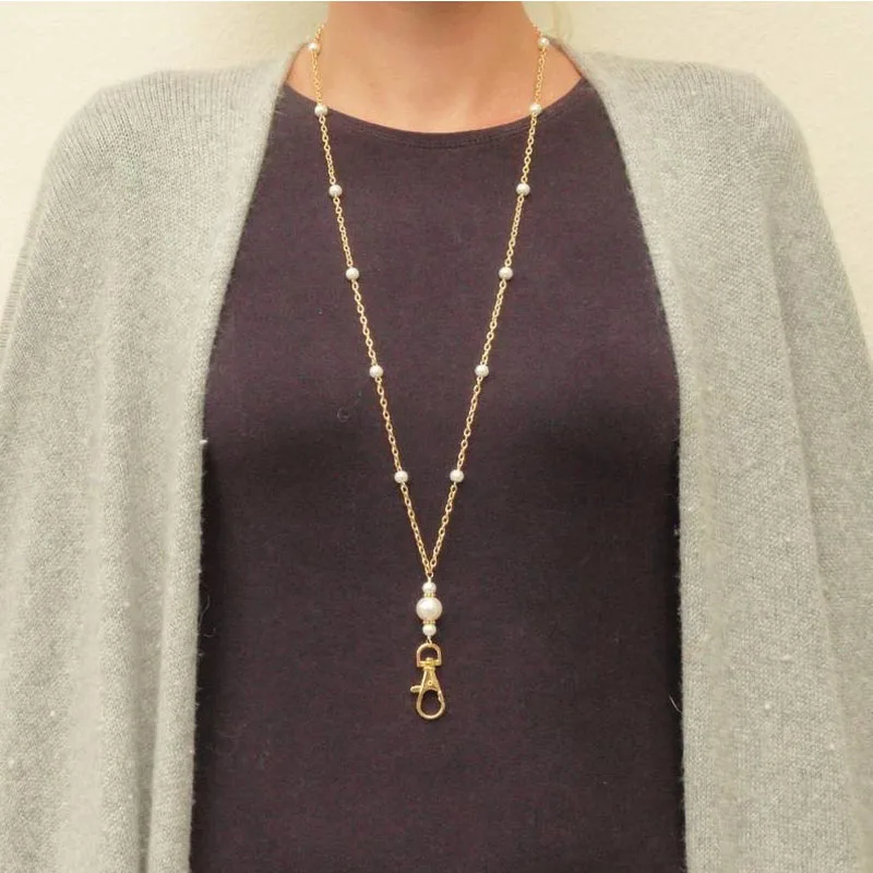 Золотая цепочка Искусственный белый жемчуг Цепочки и ожерелья держатель значка брелок талреп коллега подарок