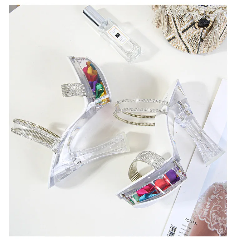 SHUZUIMIAO новые ПВХ прозрачные туфли-лодочки; Модная обувь с украшением в виде кристаллов Платформа, высокий каблук сандалии с открытыми пальцами каблук из плексигласа вечерние туфли большой размер 43