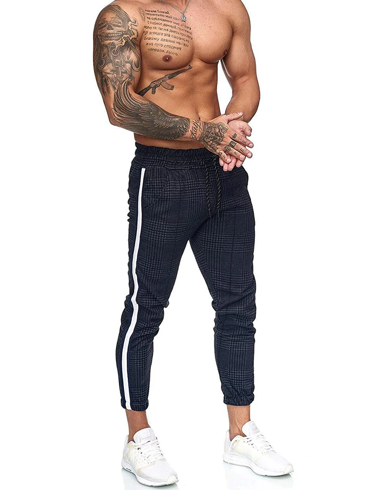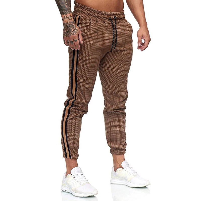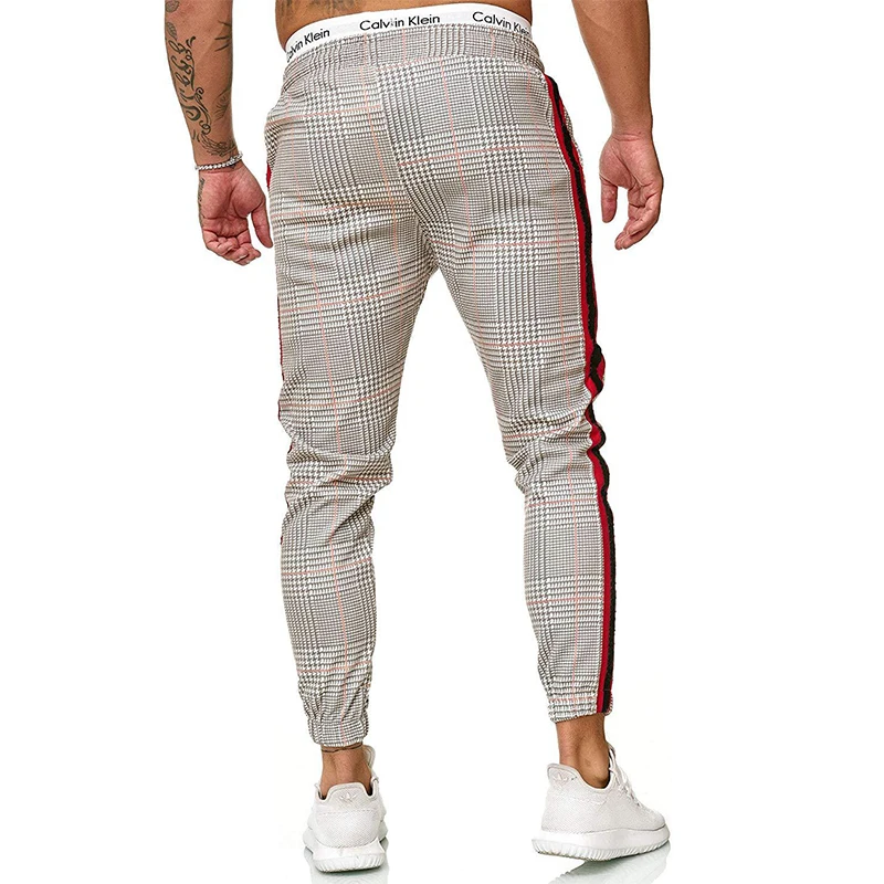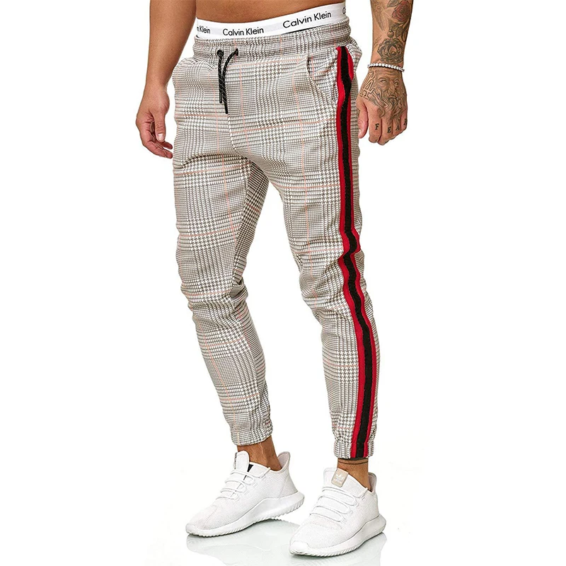Брюки мужские длинные в полоску сбоку, спортивные клетчатые штаны, Повседневная Уличная одежда, спортивные Джоггеры для бега