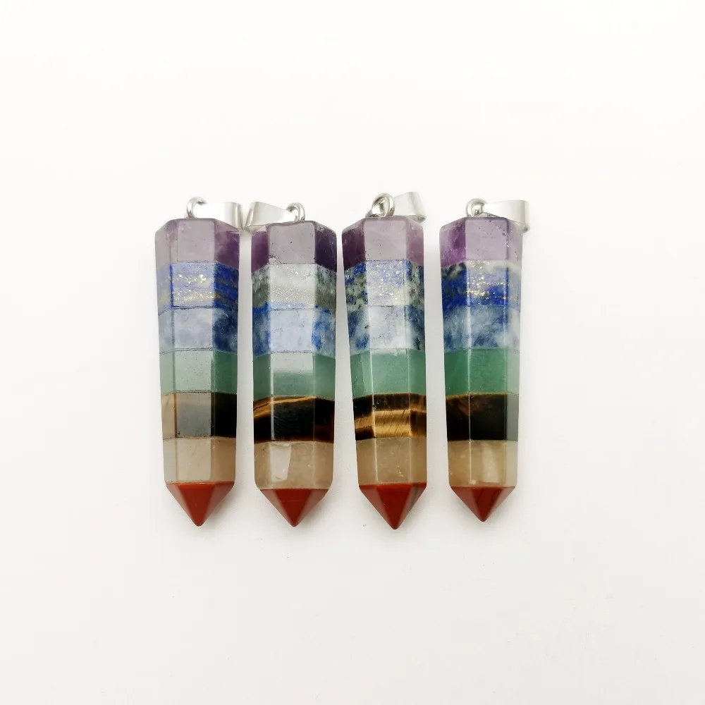 Модные Рейки Исцеление разноцветная каменная крошка натуральный 7 Чакра Orgone энергия кулон ожерелье маятник амулет на возраст 1, 2, 3, 4, pc 12X47MM
