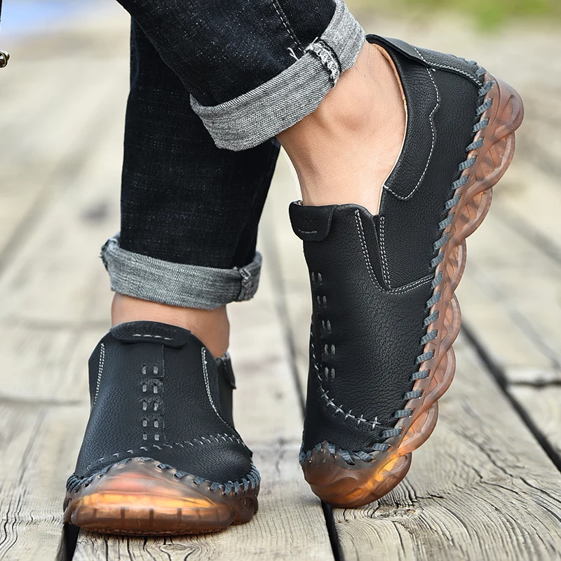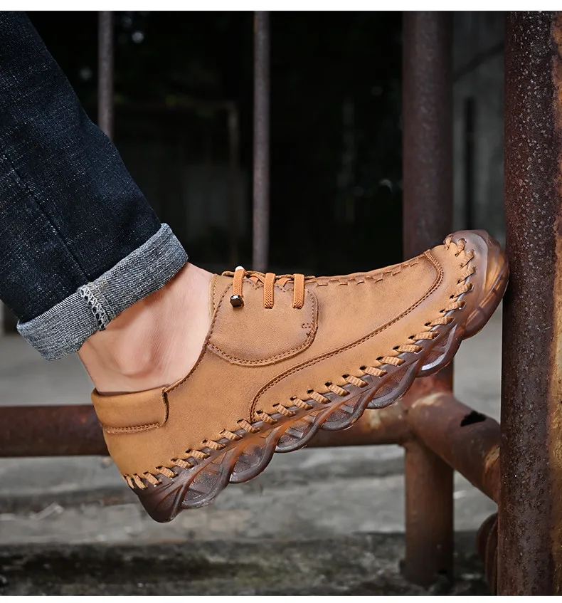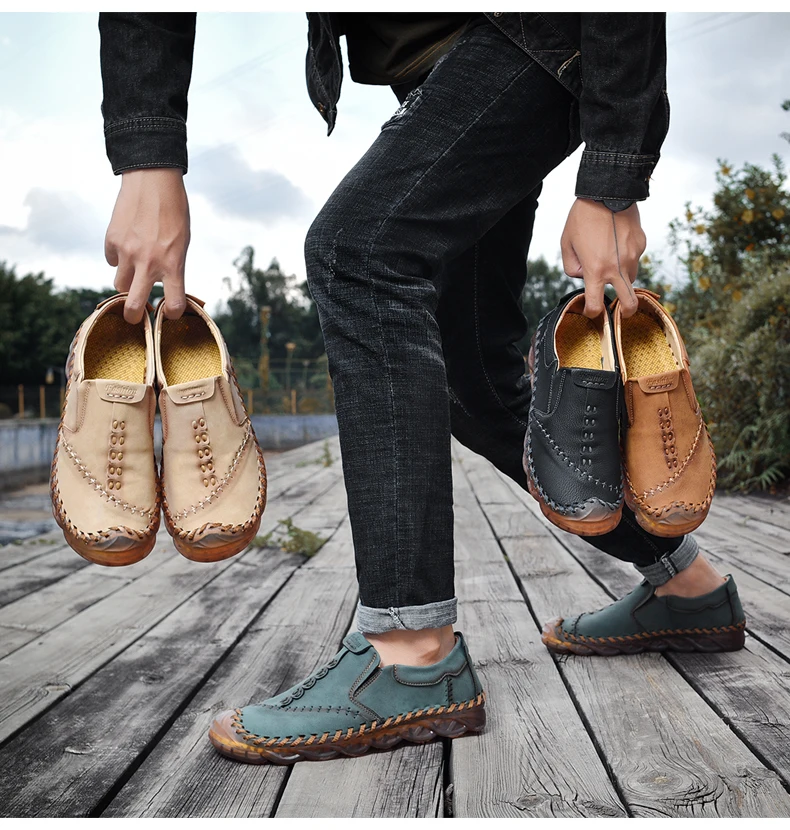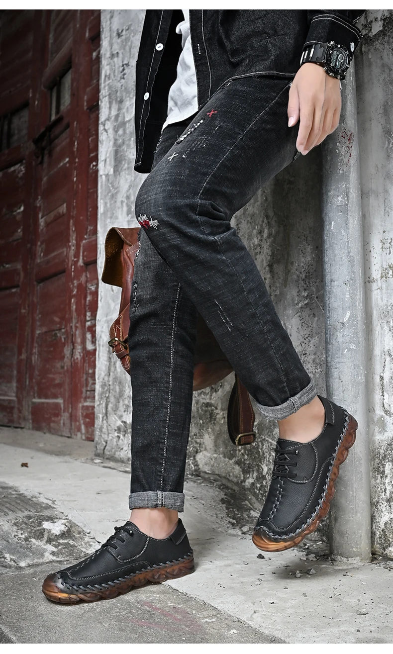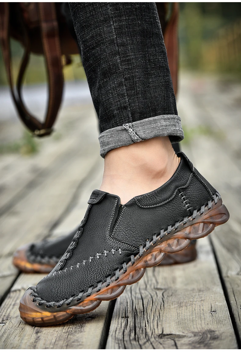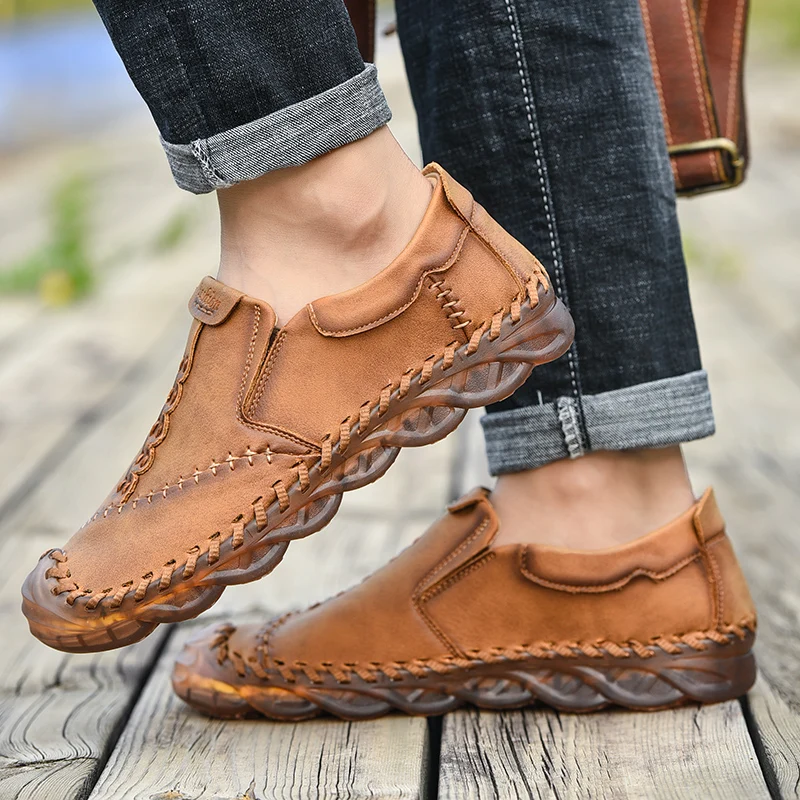 Мужские кожаные туфли ручной работы, уличные повседневные лоферы, плоская подошва, дышащие модные кроссовки, Мокасины, дизайнерский стиль