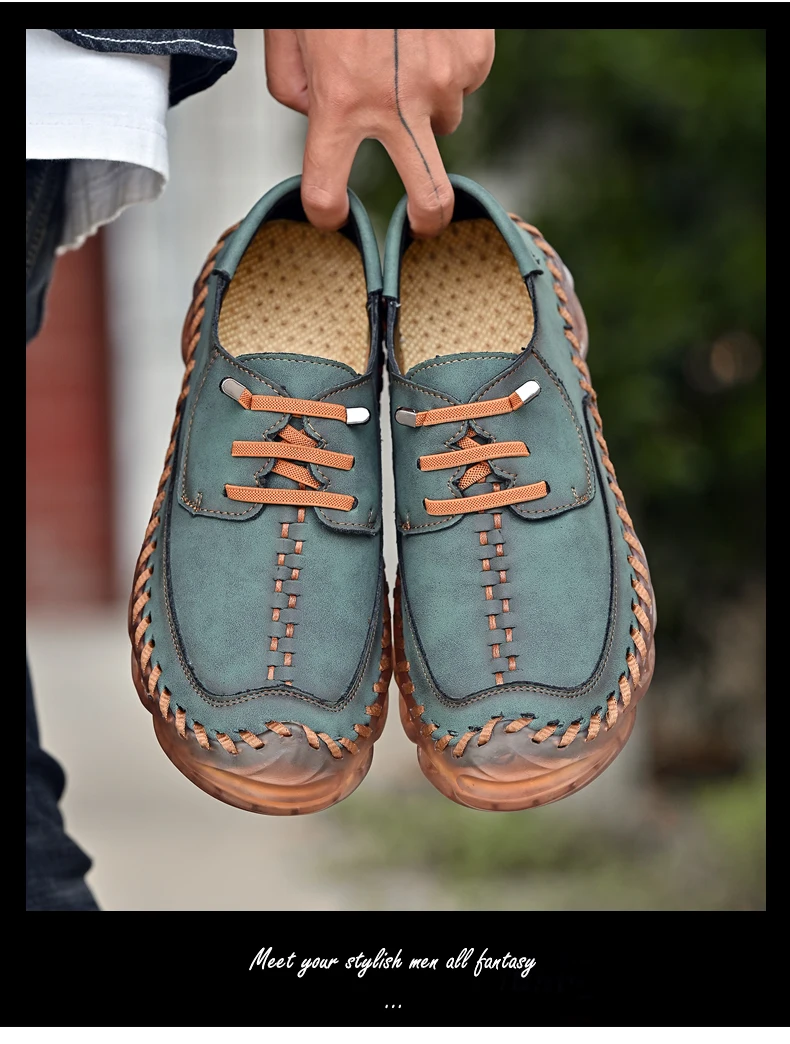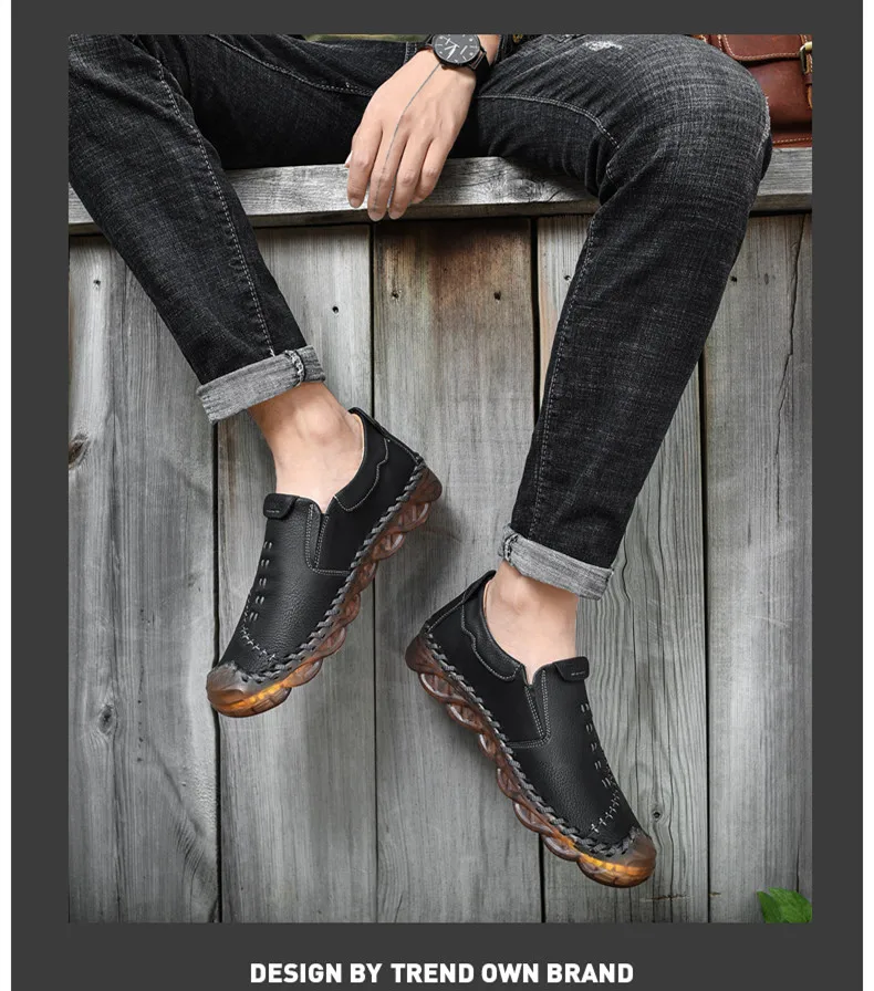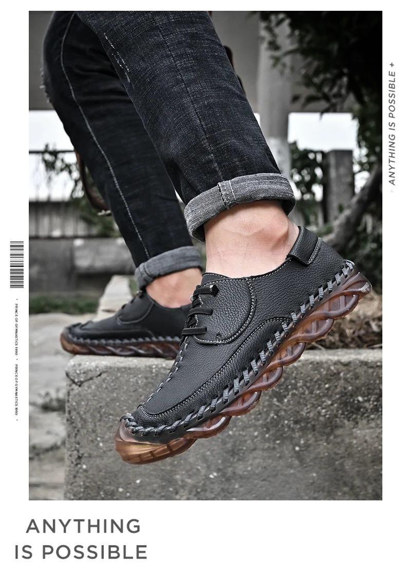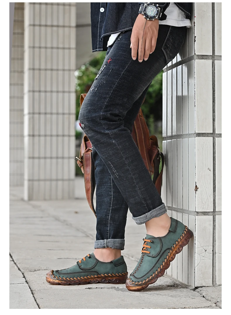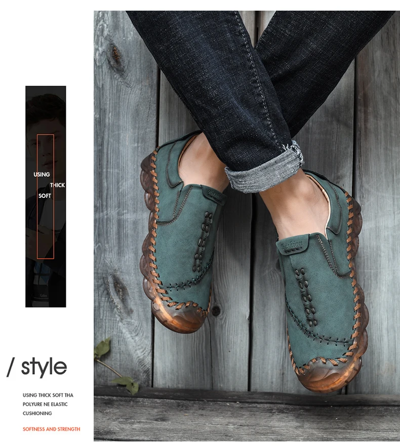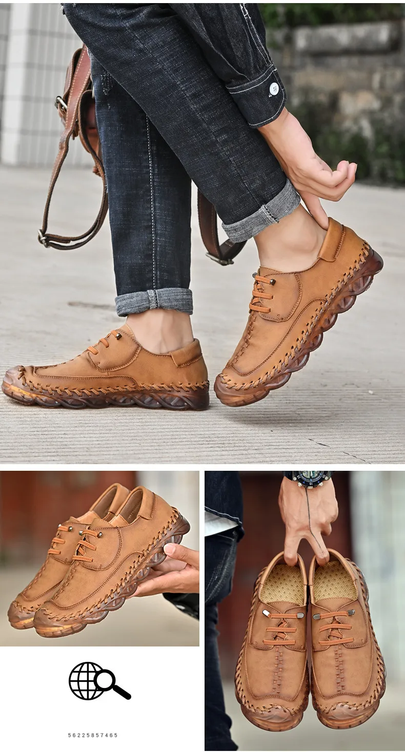 Мужские кожаные туфли ручной работы, уличные повседневные лоферы, плоская подошва, дышащие модные кроссовки, Мокасины, дизайнерский стиль