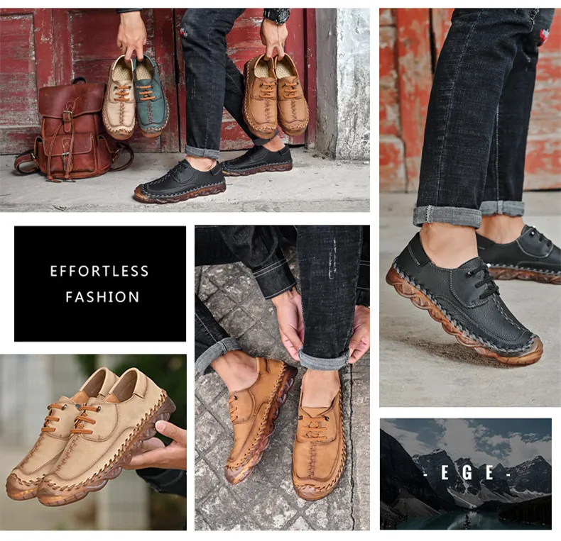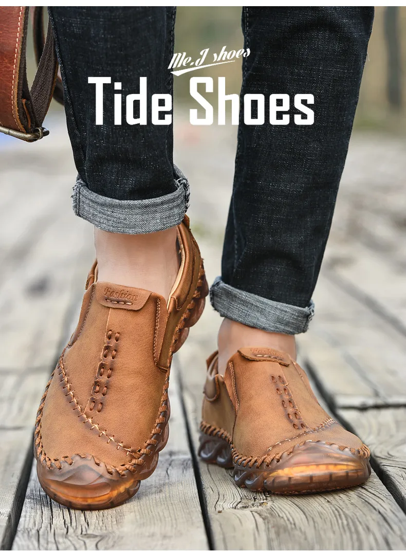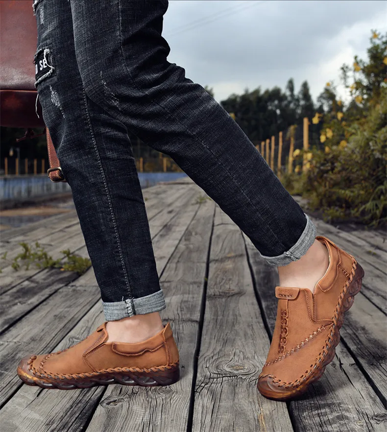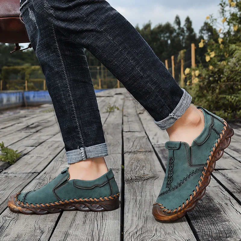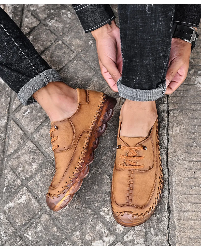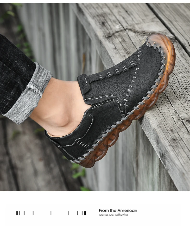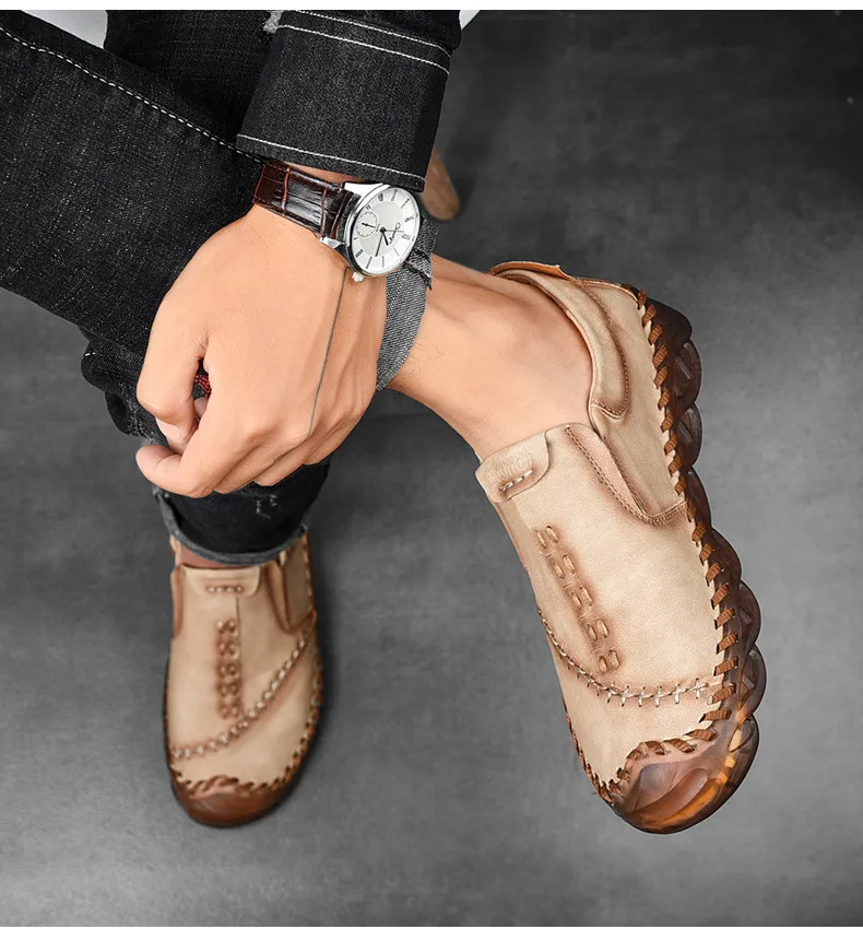 Мужские кожаные туфли ручной работы, уличные повседневные лоферы, плоская подошва, дышащие модные кроссовки, Мокасины, дизайнерский стиль