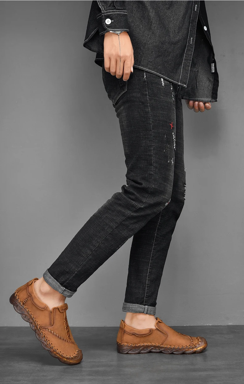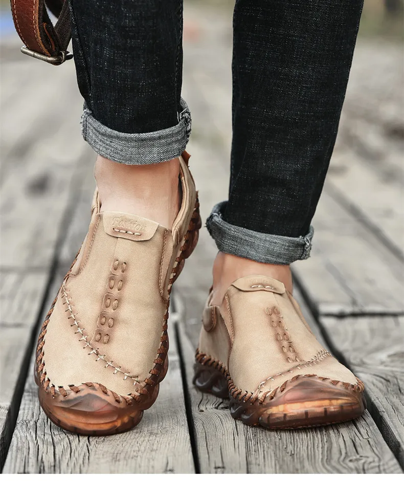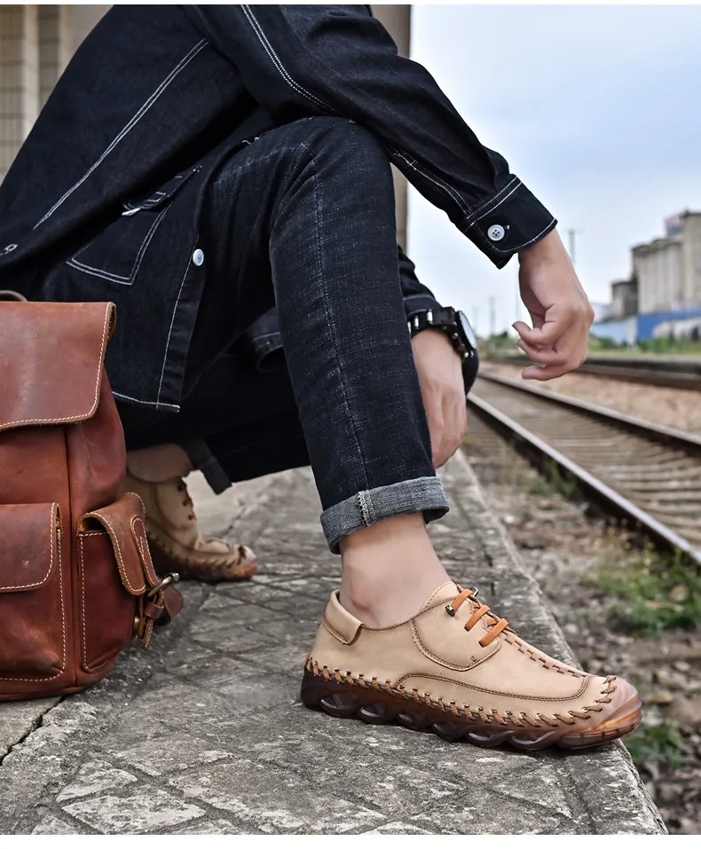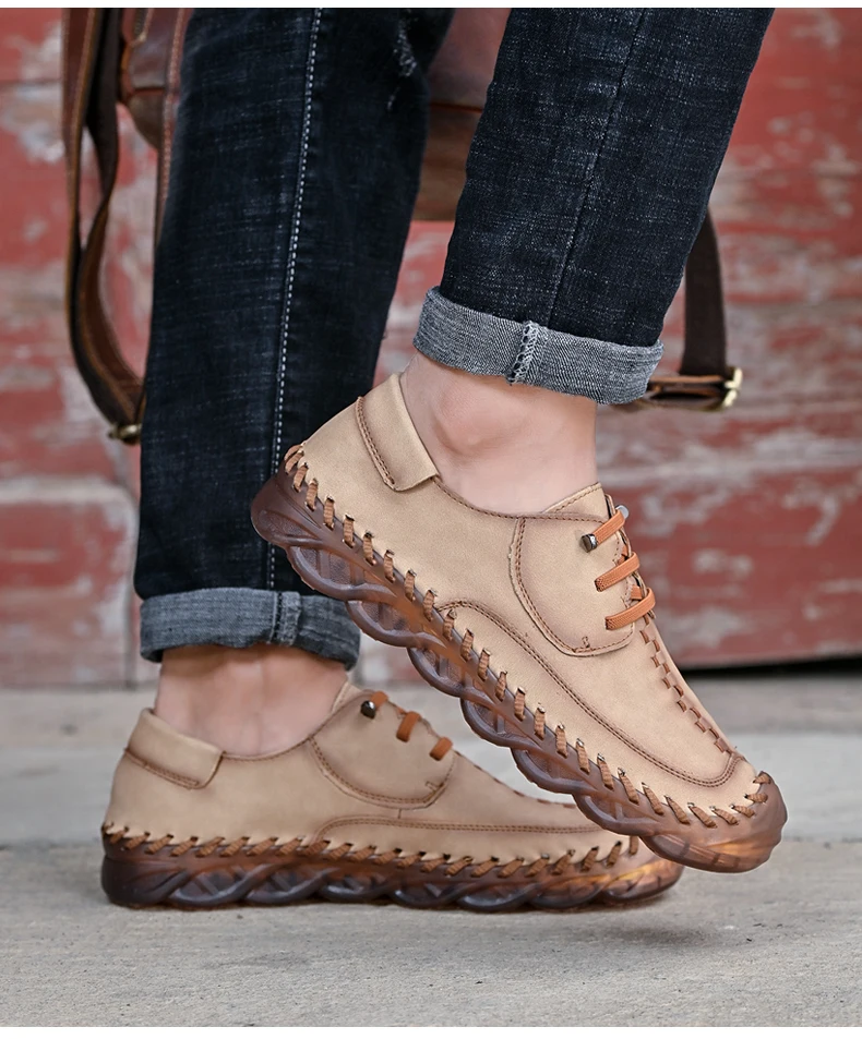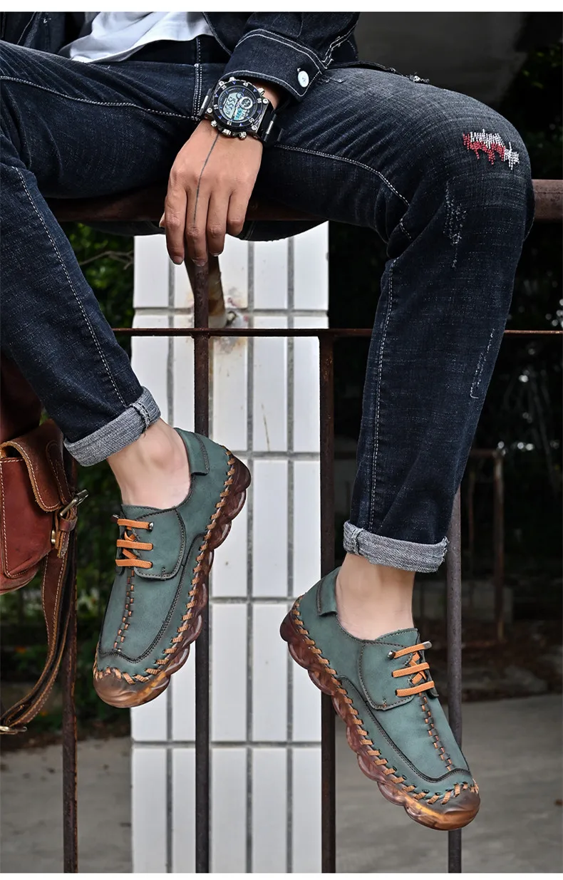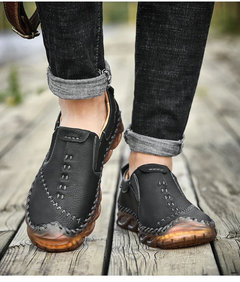 Мужские кожаные туфли ручной работы, уличные повседневные лоферы, плоская подошва, дышащие модные кроссовки, Мокасины, дизайнерский стиль