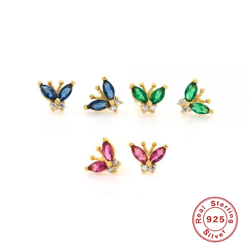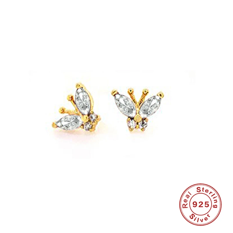 Женские серьги-гвоздики в виде бабочки, из серебра 925 пробы