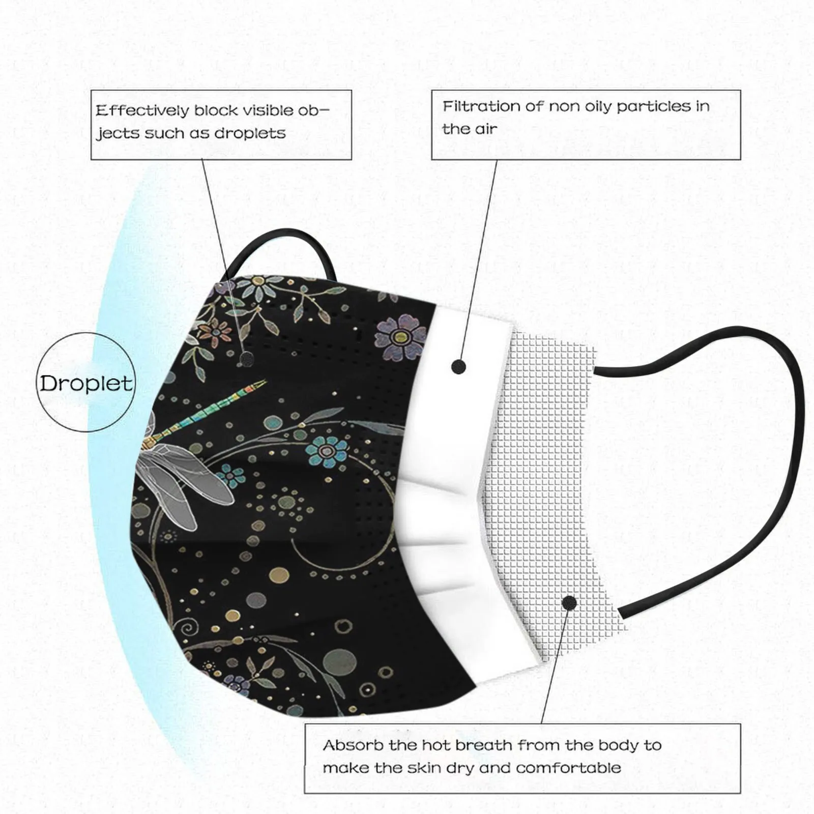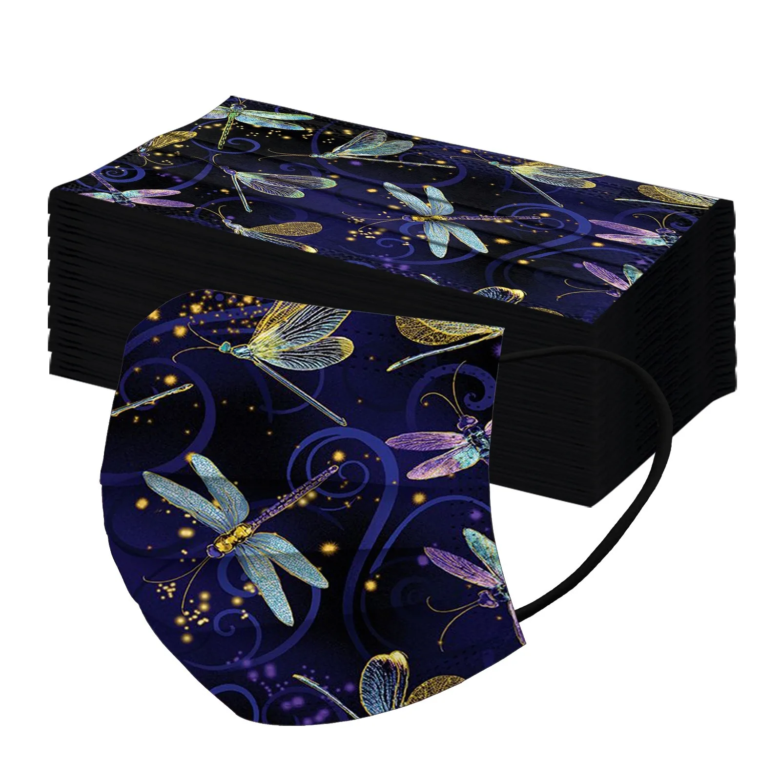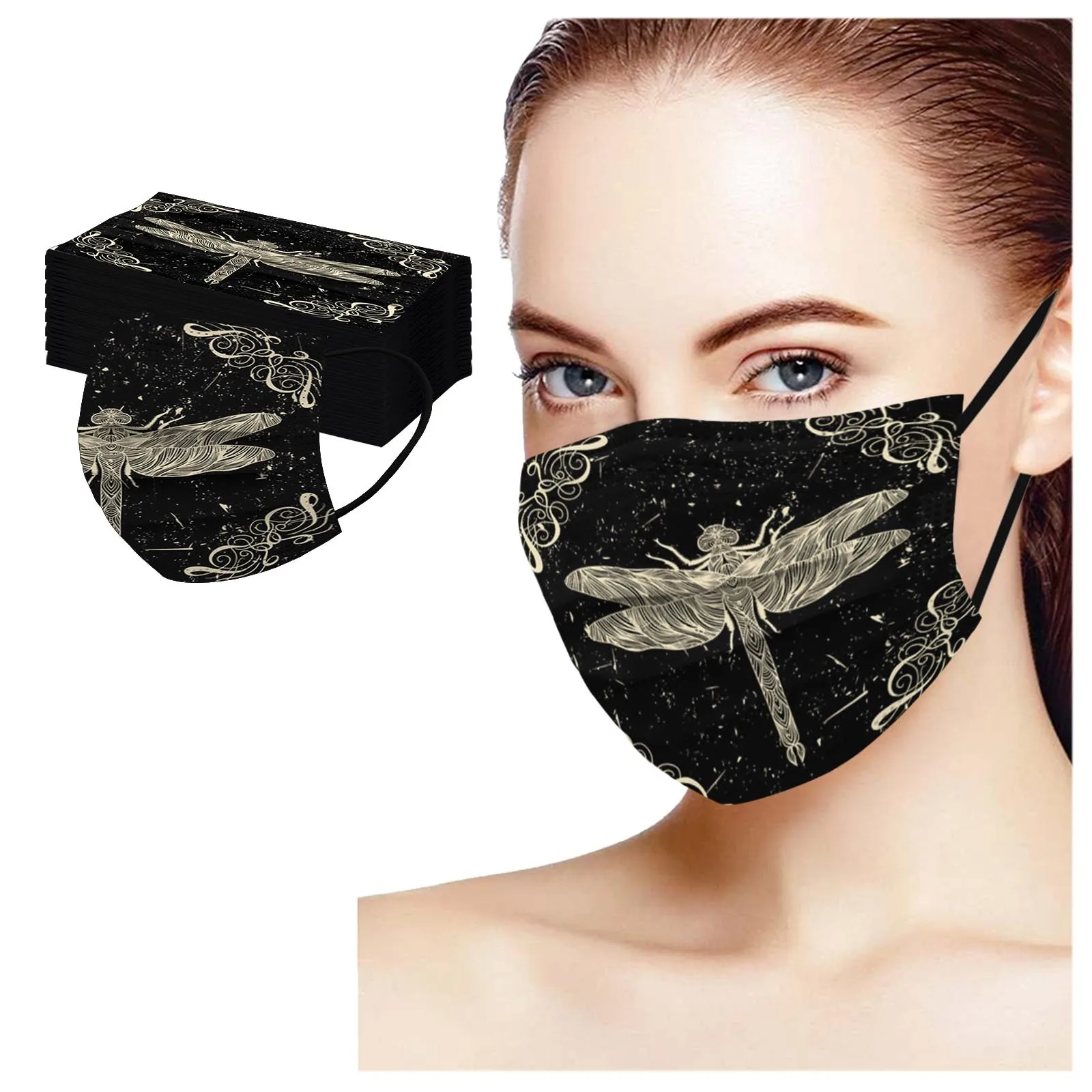 50 шт. одноразовые защитные маски для взрослых маски женские маски с цифровым принтом стрекозы 3-слойная дышащая модная маска для лица маски