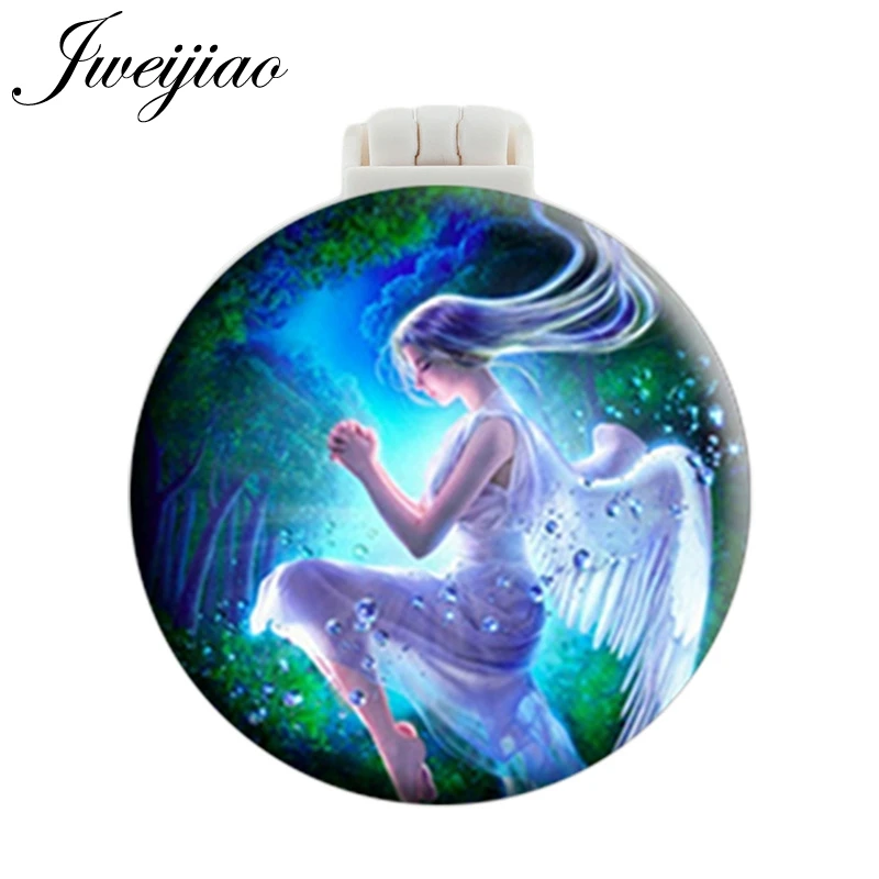 Youhaken Фея Ангел женское карманное зеркало с массажной расческой складной круглый компактный портативный макияж ручное косметическое зеркало мини стиль