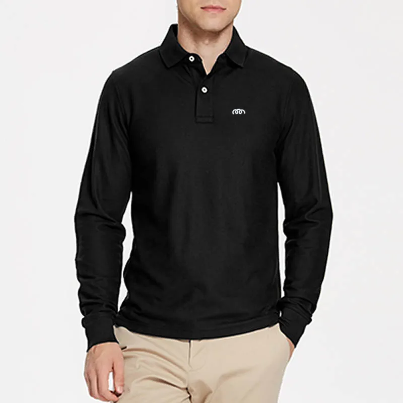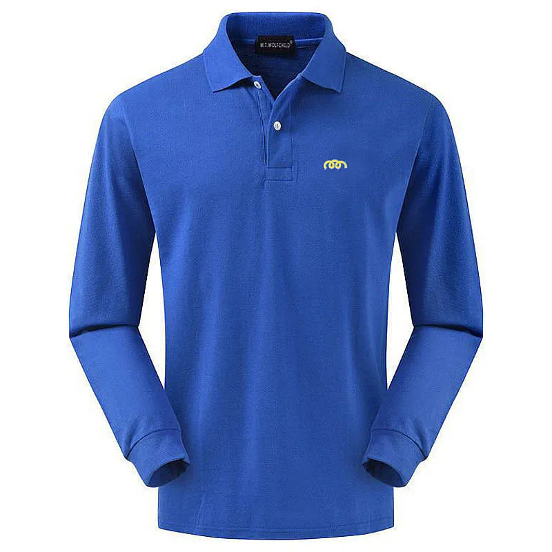 Мужские рубашки-поло, из 100% хлопка, с длинным рукавом, повседневн...
