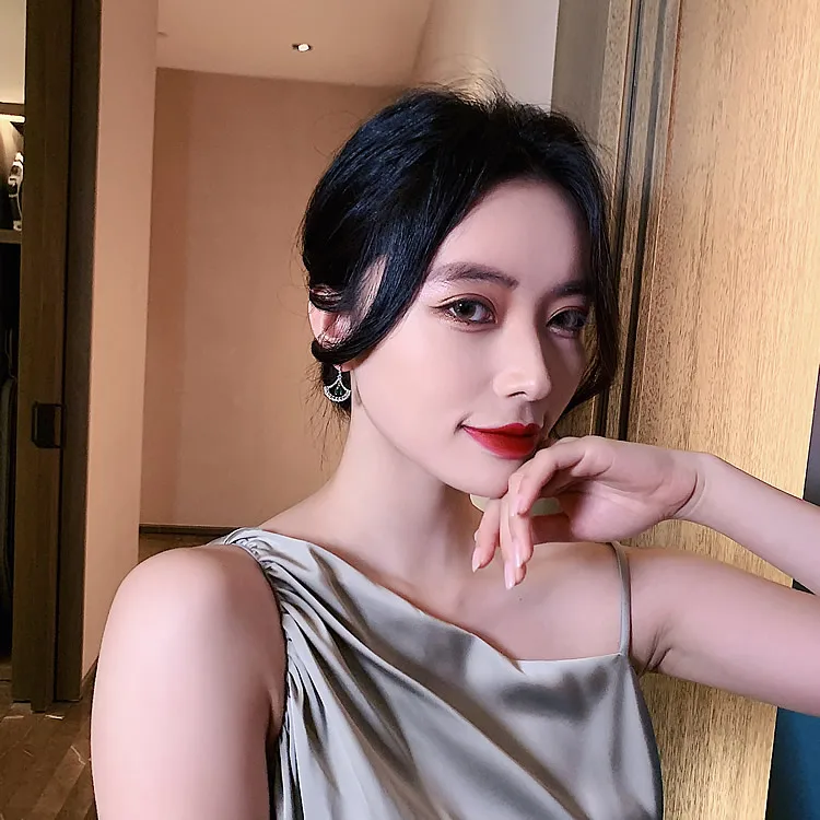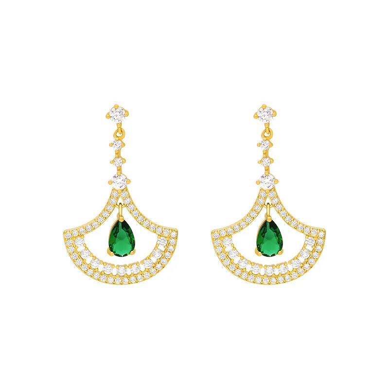Модные Зеленые хрустальные серьги-подвески в форме веера, золотого цвета, металлические блестящие серьги со стразами для женщин, ювелирные изделия для вечеринок, подарки