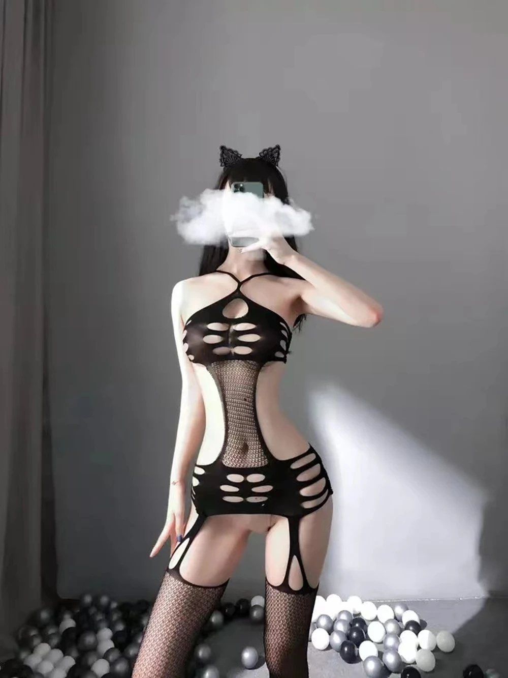 Описание:Тип: Сексуальное бельеМатериал: полиэстерРазмер: свободный размерПодходящий размер XS-XL, подходит для дам весом (40-70 кг)Цвет: черный Посылка входит:1 комплект сексуального нижнего белья (не включая шпильку)
