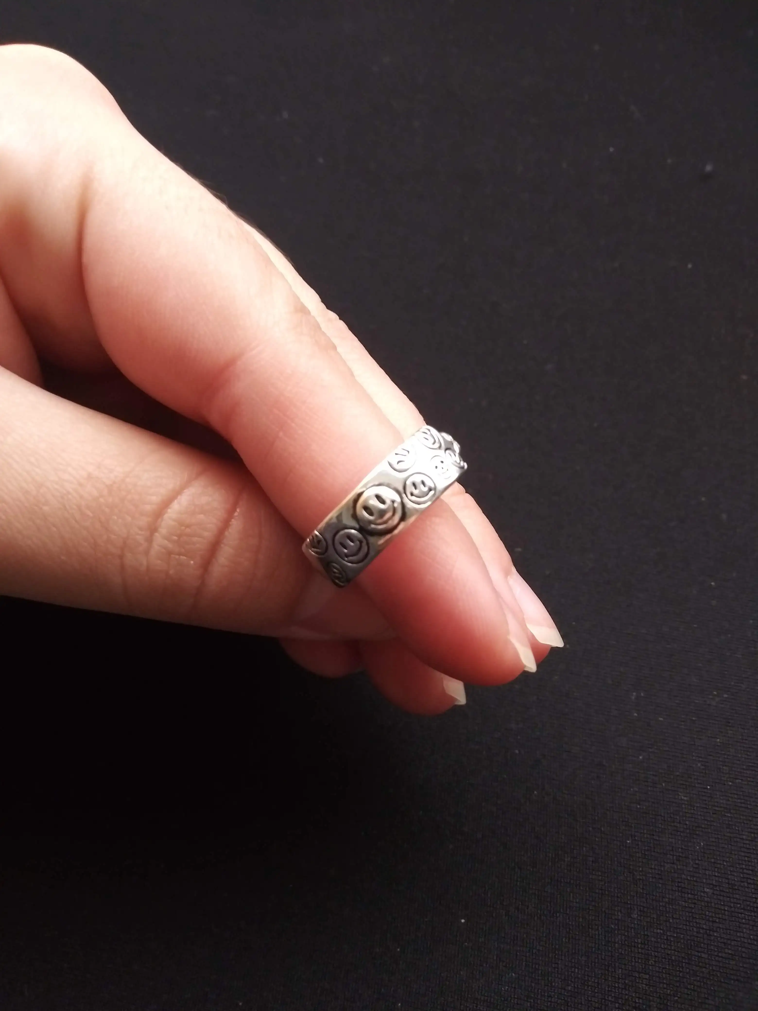 Кольцо унисекс, регулируемое в стиле хип-хоп, 2021, винтажный античный серебряный цветов, Счастливое Улыбающееся Лицо, модные украшения