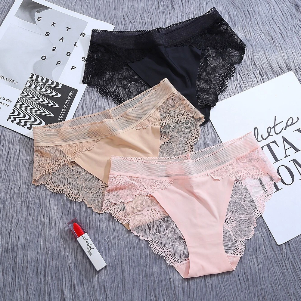 Трусы женские бесшовные, кружевные прозрачные дышащие хлопковые, со средней талией, размера плюс, хип-трусы