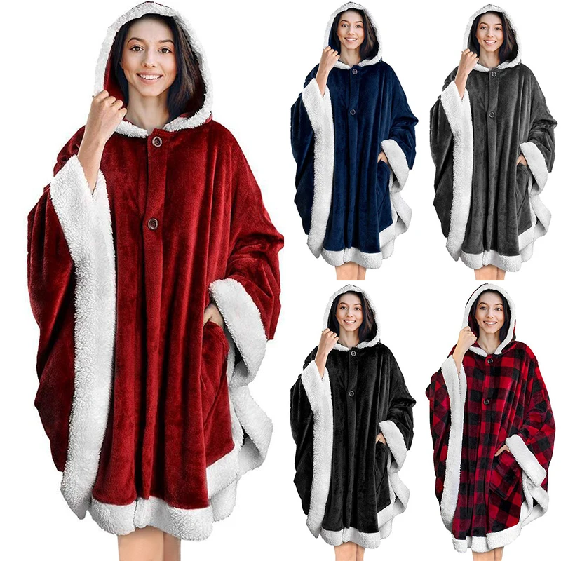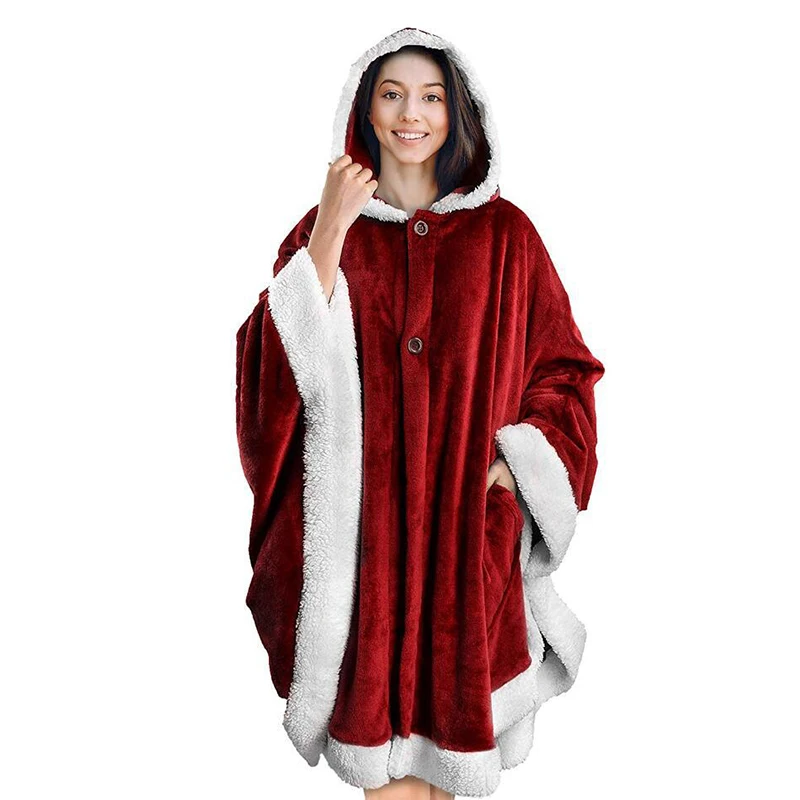 Накидка-пончо с капюшоном в виде ангела, 94 см, теплая плюшевая накидка из шерпы на флисе, мягкие, удобные для носки