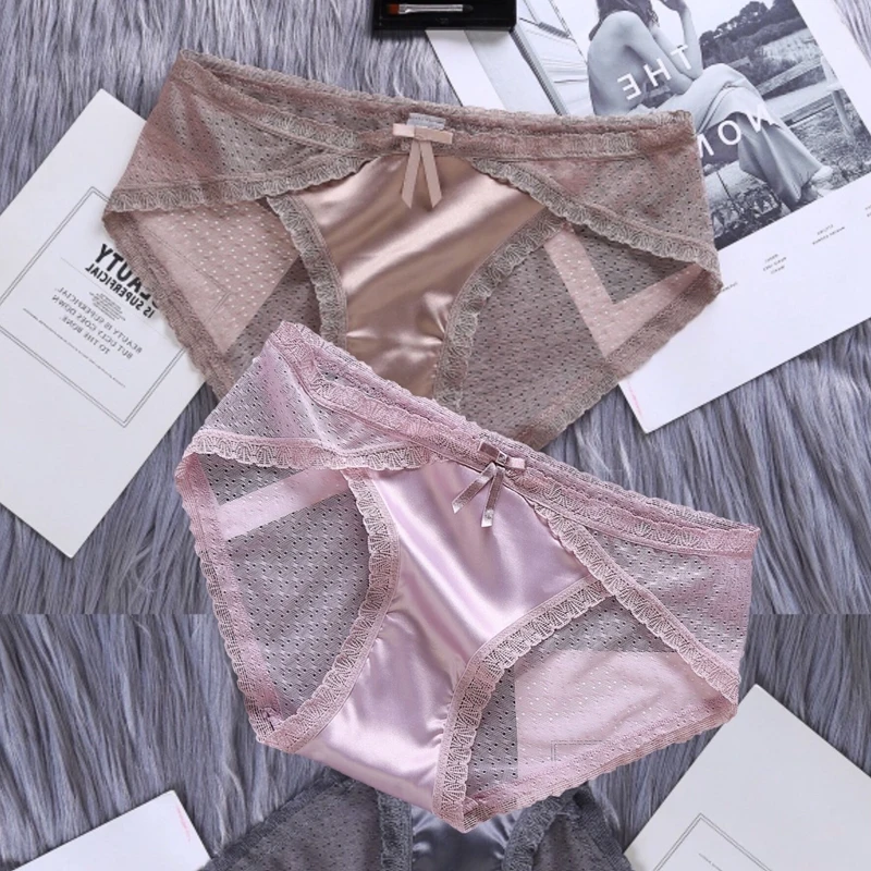 Трусики женские кружевные, атласные, прозрачные, бесшовные, до середины талии
