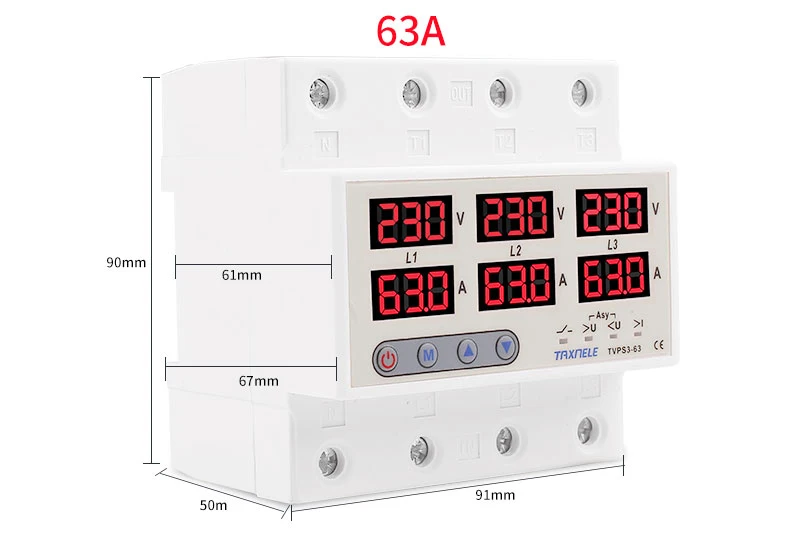 Трехфазный защита реле напряжения тока 63 а 60 А 220 В реле перенап...