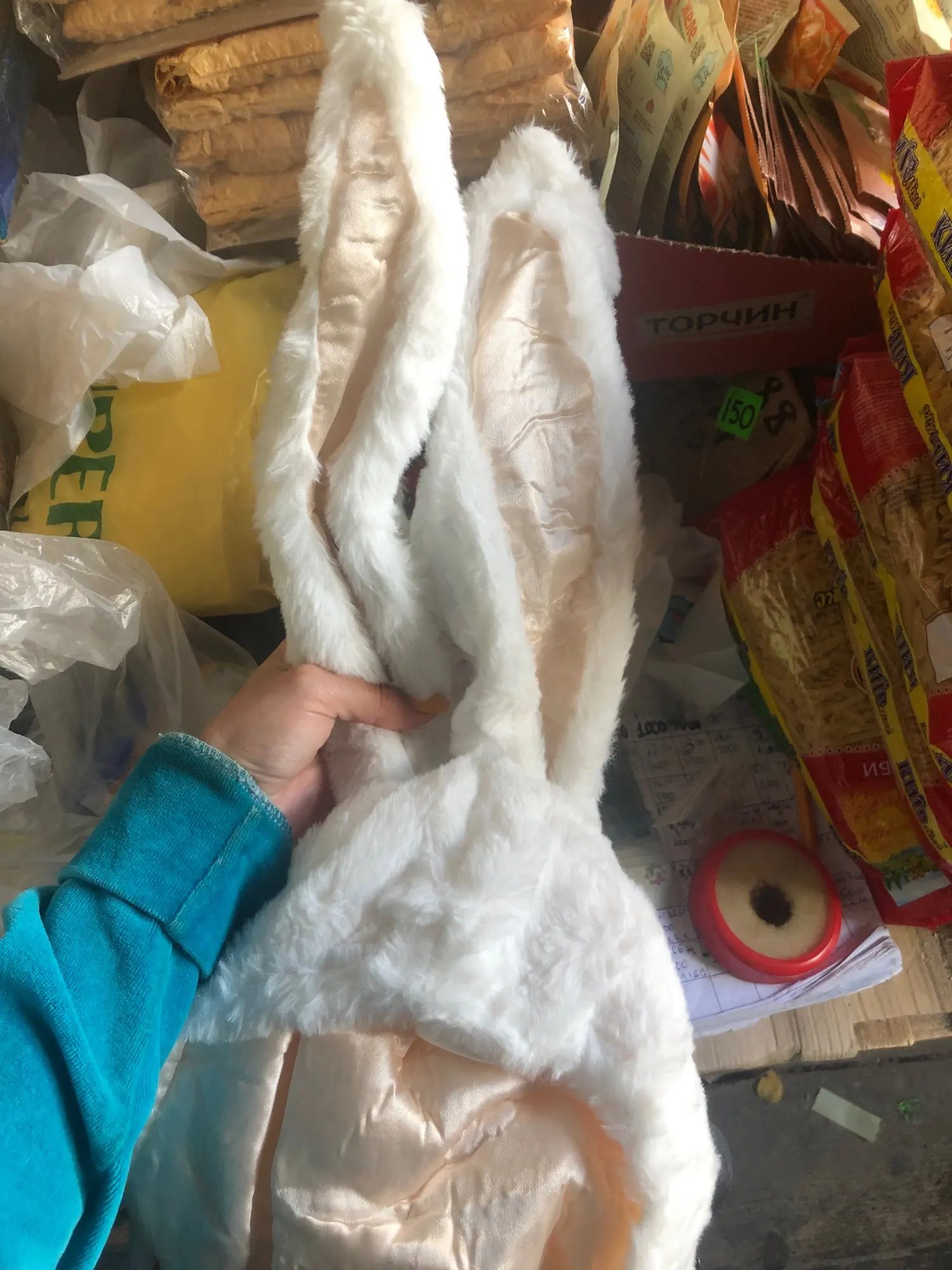 Шапка-капюшон женская, плюшевая, с заячьими ушками