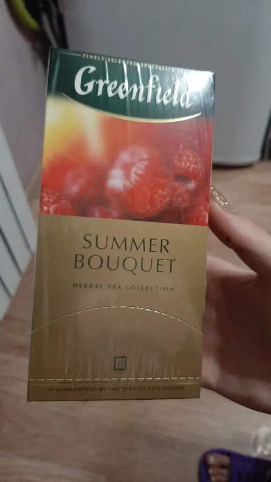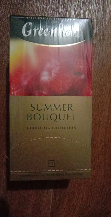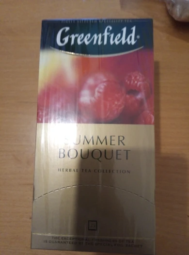 Яркий аромат спелой малины выступает доминантой композиции фруктового Greenfield Summer Bouquet. Характерный вкус шиповника смягчает острую кислинку гибискуса и вносит завершающую ноту в экзотическое звучание Greenfield Summer Bouquet. Не содержит кофеина, прекрасно освежает и утоляет жажду. Можно употреблять охлажденным.