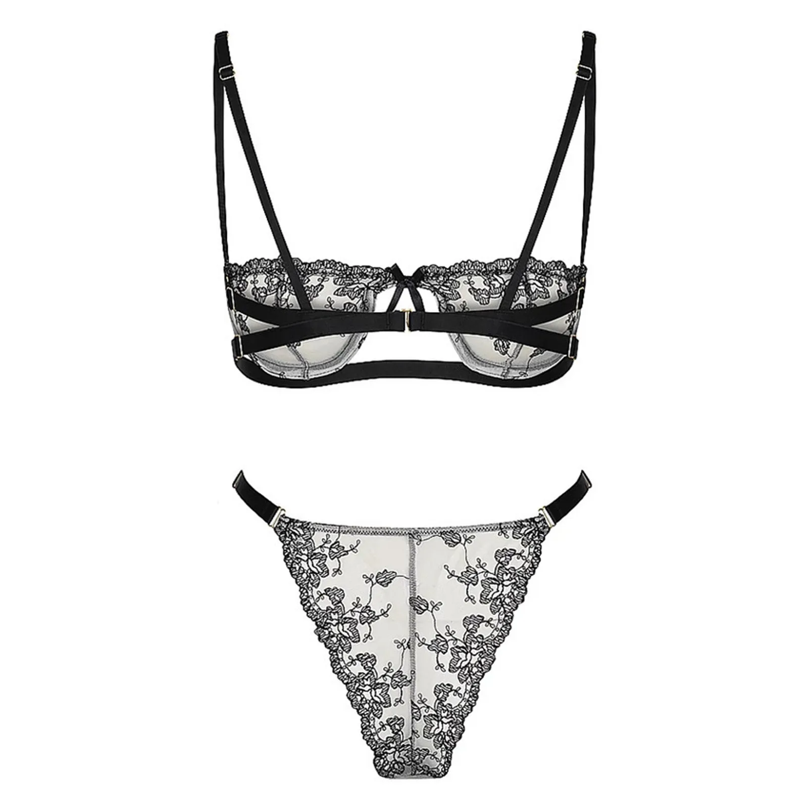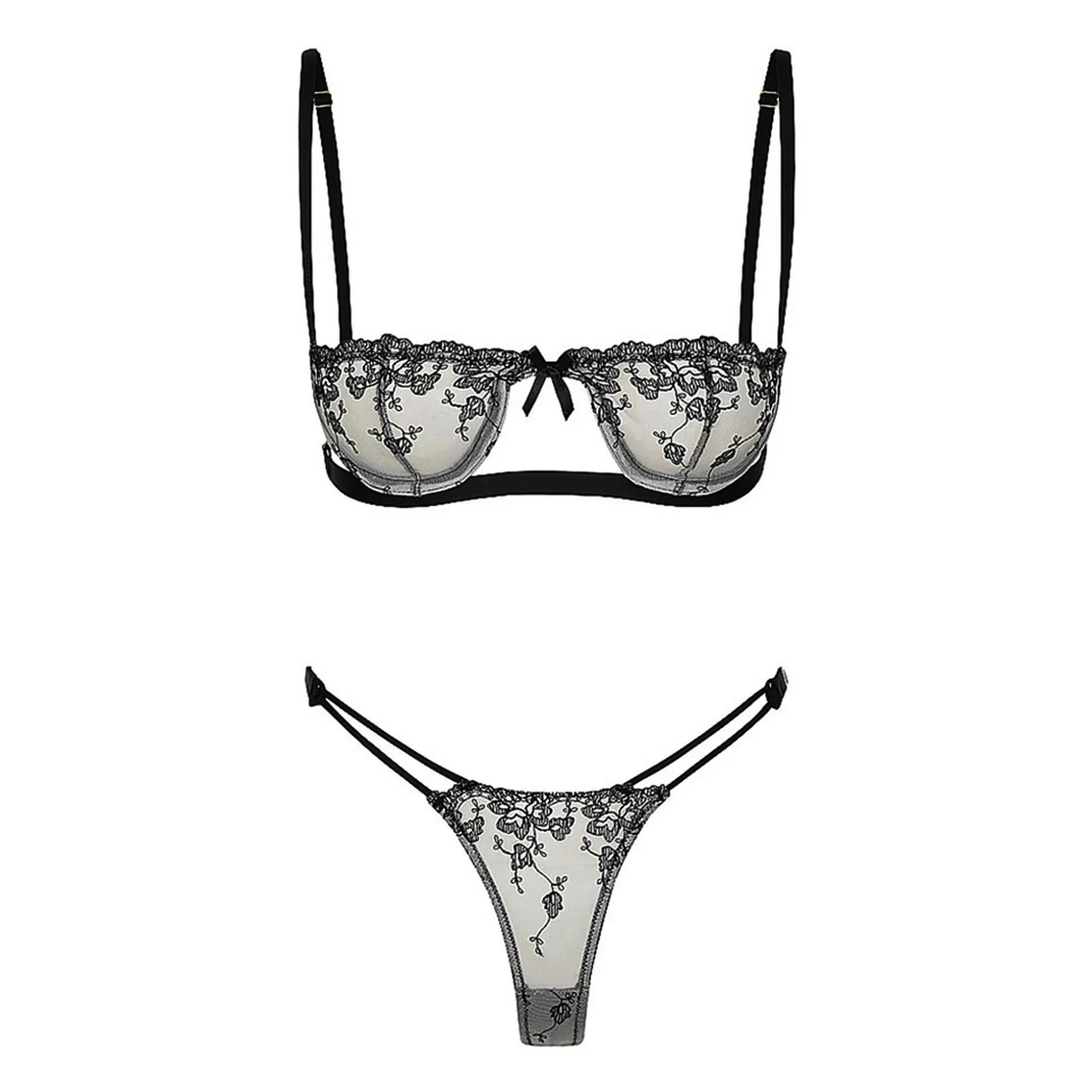 Кружевное сексуальное нижнее белье с вышивкой, Прозрачное нижнее бе...