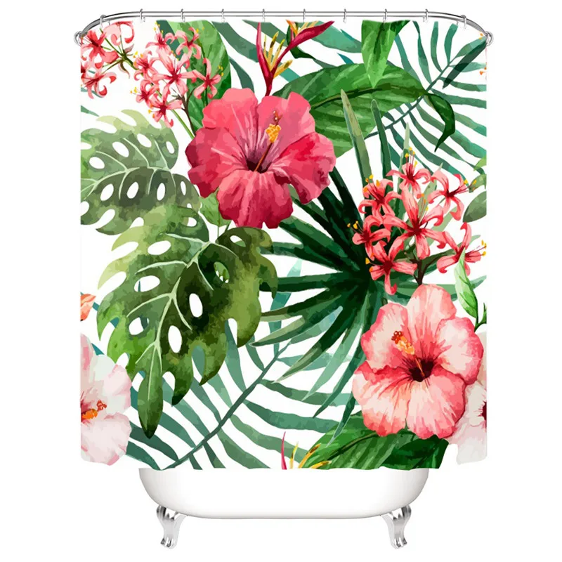 Водонепроницаемая шторка для душа, элегантная занавеска с большими листьями и цветочным принтом, с крючками, для ванной комнаты, Набор ковриков для ванной комнаты, украшение для дома