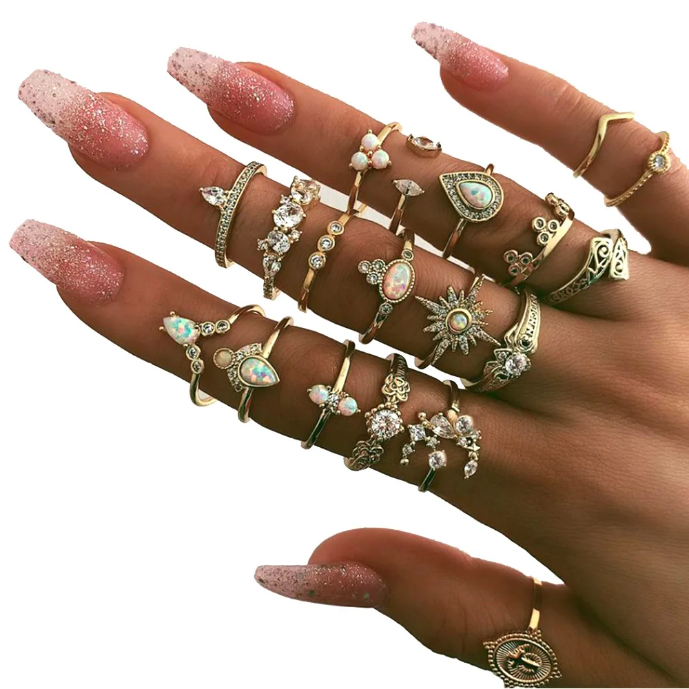 Комплект женских колец в богемном стиле, Комплект украшений из 17 п...