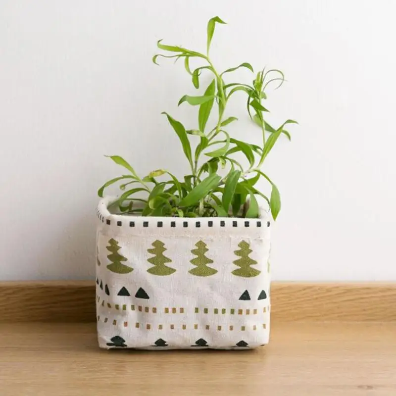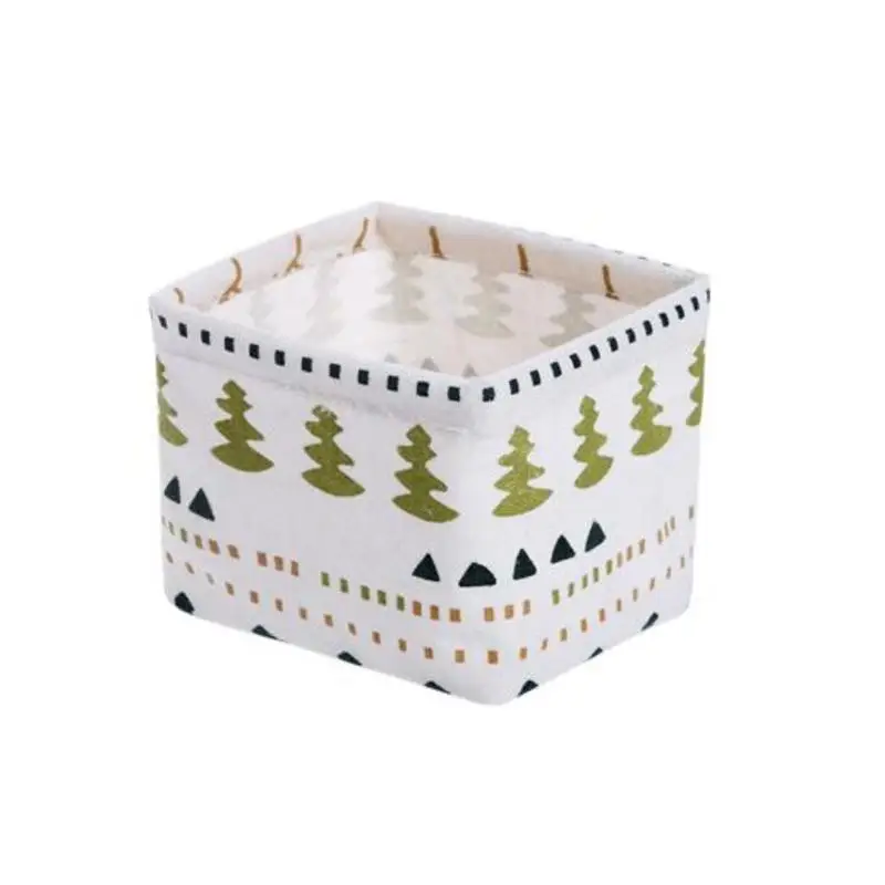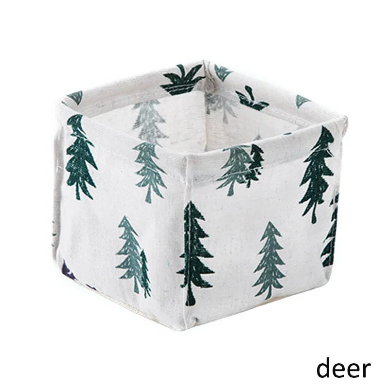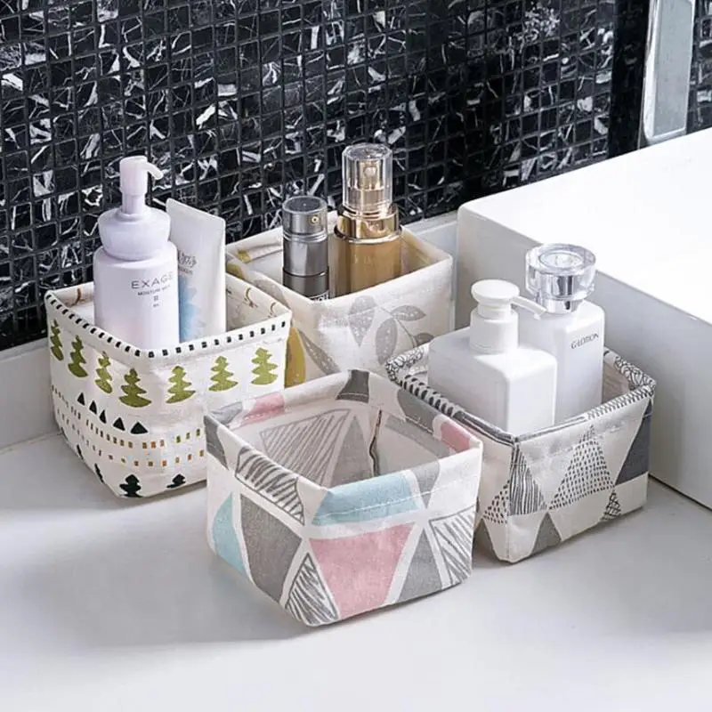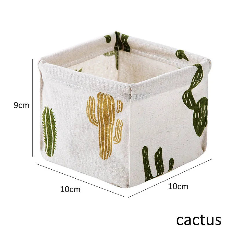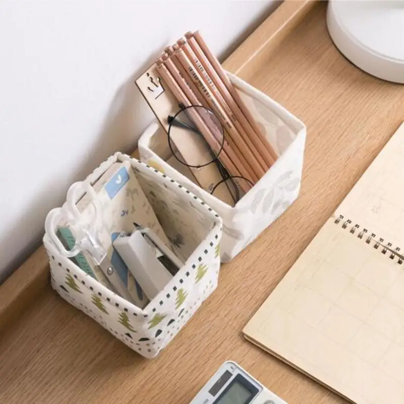Складная корзина для мелочей, многофункциональный контейнер для косметики с милым принтом, из хлопка и льна, настольный органайзер для дома