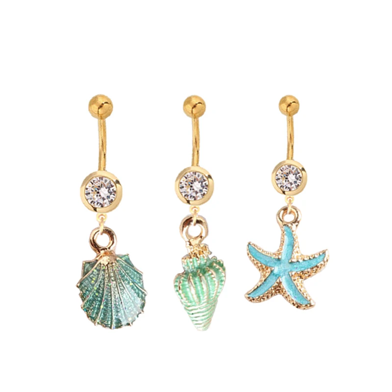 1 шт. модное летнее кольцо для живота с золотыми ракушками, богемные кольца на пупок, кольцо для пупка с морской звездой, ювелирные изделия для пирсинга пупка, подарок для Grilfriend