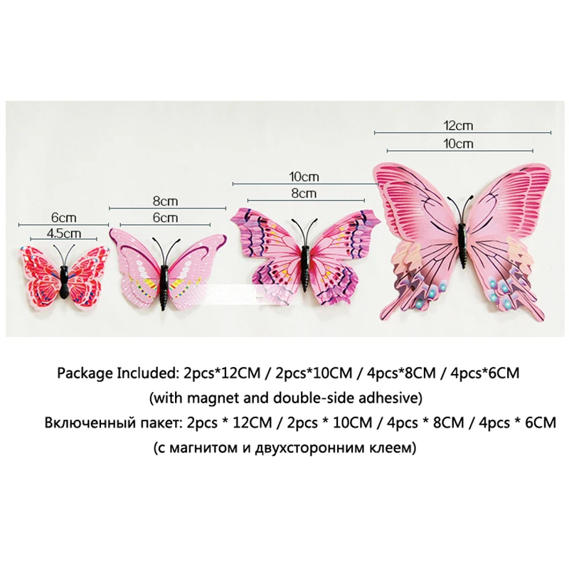 12 шт. в упаковке, 3D двойной слой бабочка стикер стены, украшение ...
