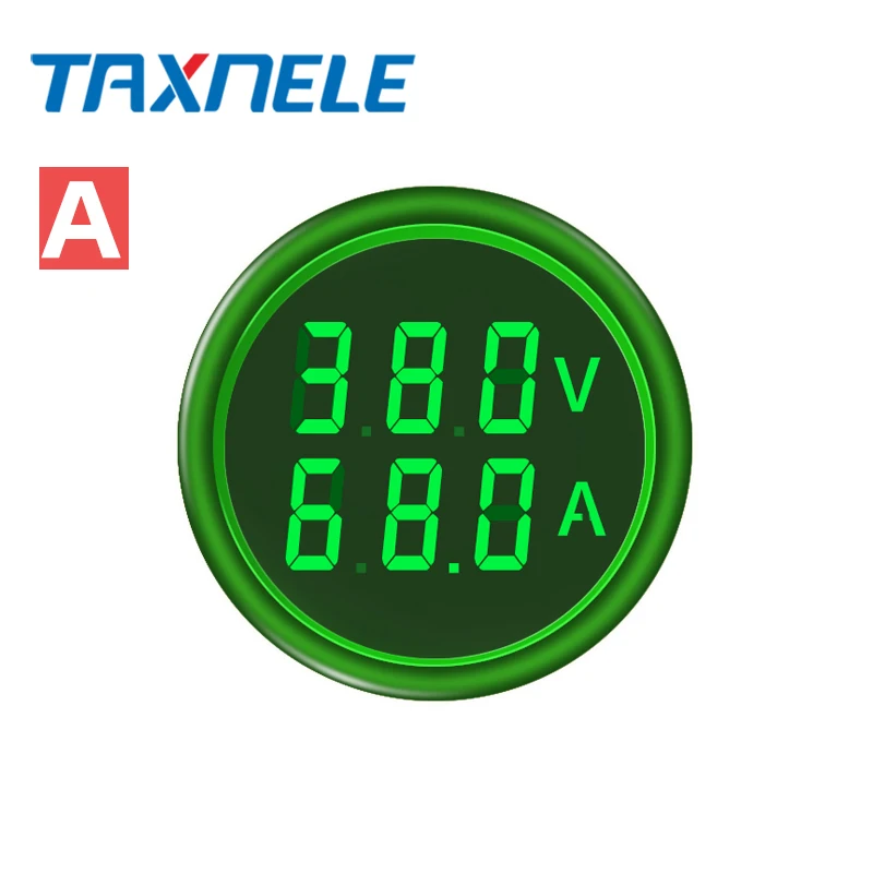 Цифровой вольтметр, вольтметр-амперметр с круглым квадратным светодиодным дисплеем, 22 мм