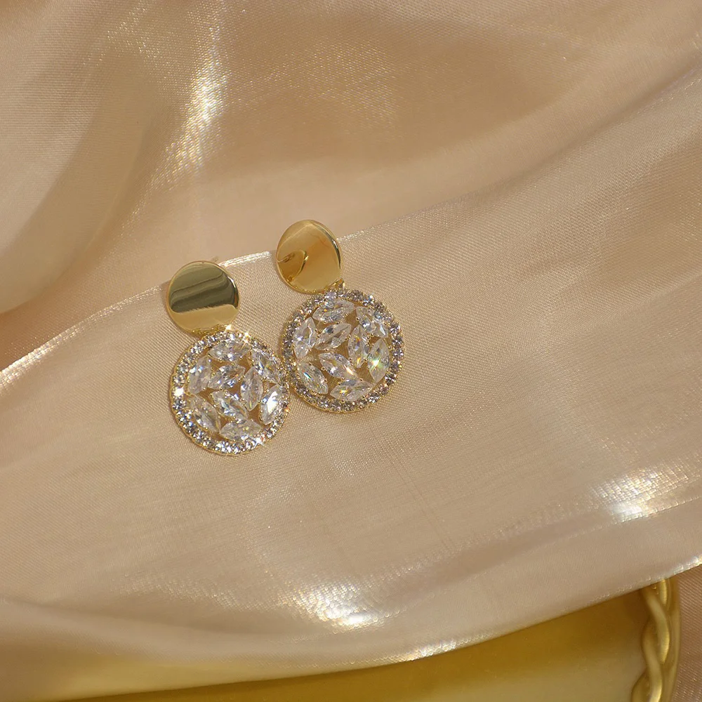 Роскошные темпераментные блестящие циркониевые круглые серьги для женщин, изящные модные ювелирные изделия, подвеска S925, булавка, высокое качество
