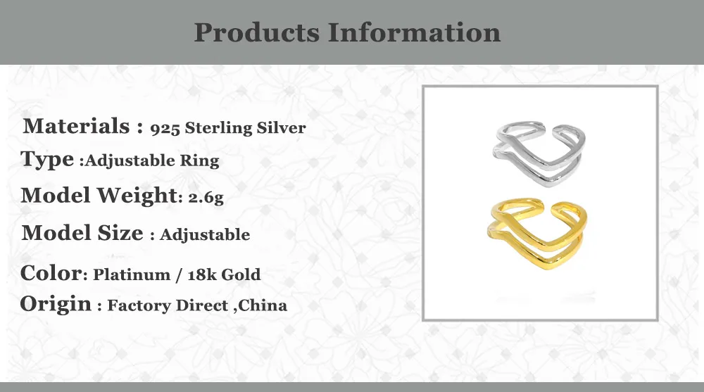 Шанис S925 стерлингового серебра Открытое кольцо простой, подходяща...