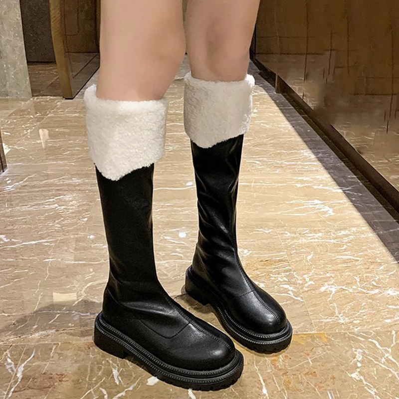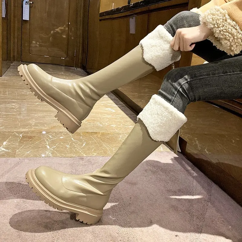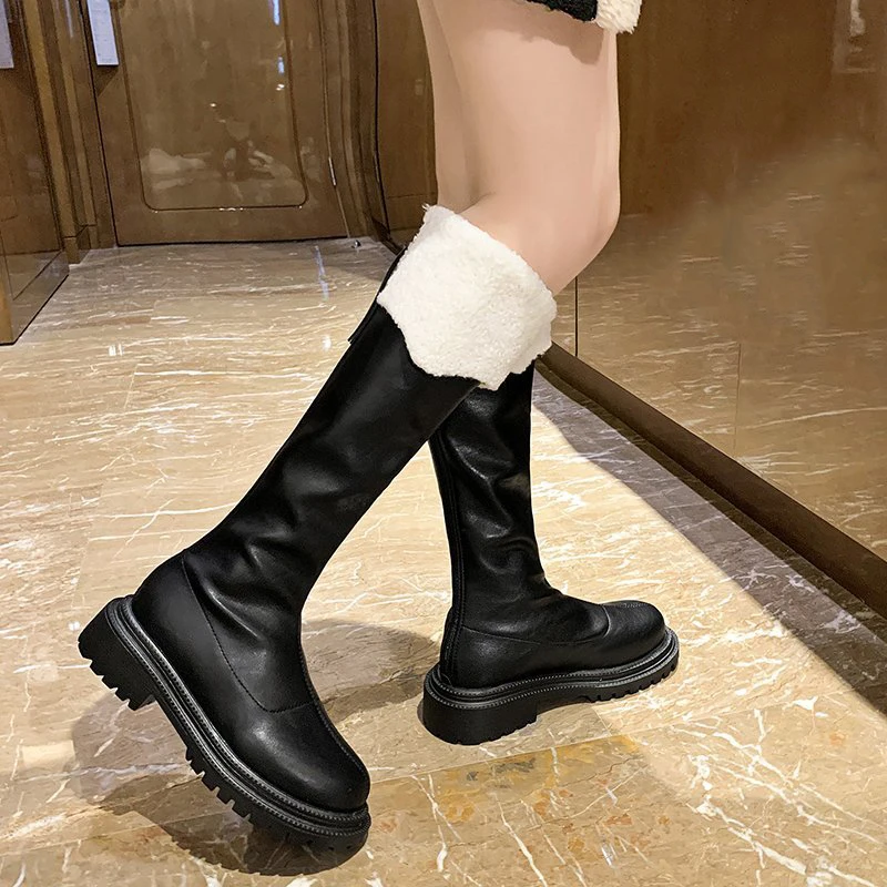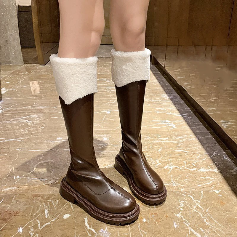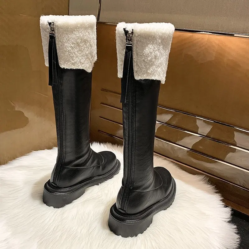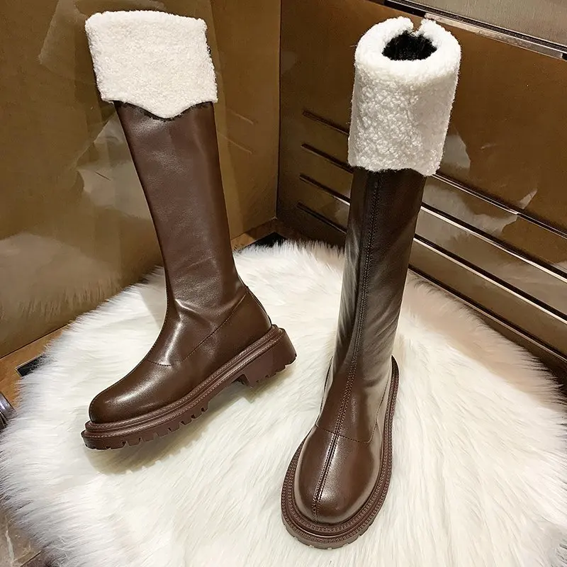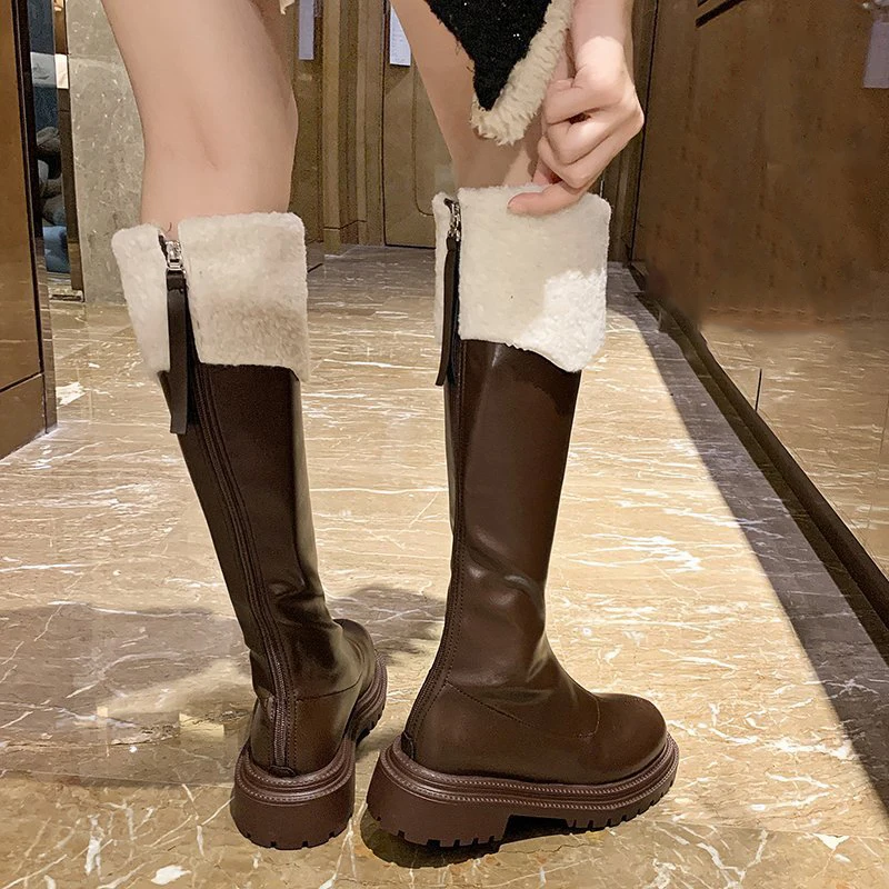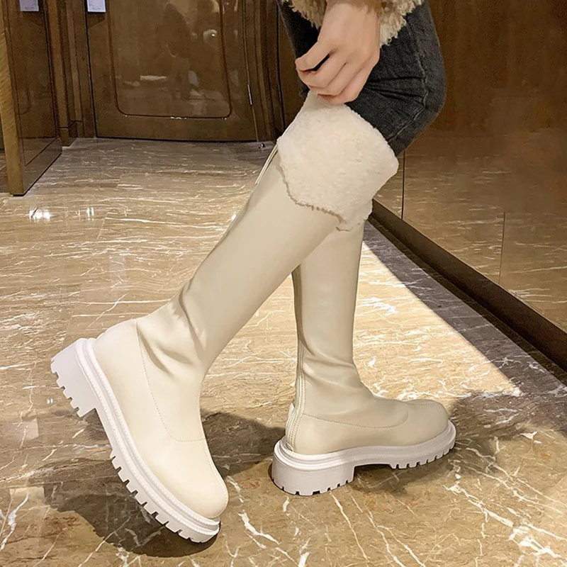 Женские сапоги на меху Rimocy, теплые зимние сапоги до колена из искусственной кожи на среднем каблуке, на платформе и молнии, новинка 2021