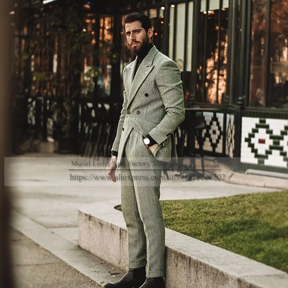 Зимние классические самое новое пальто конструкции шерстяное с узором елочка и остроконечными лацканами пиджак, мужские костюмы для свадьбы, двубортный пиджак + брюки для девочек