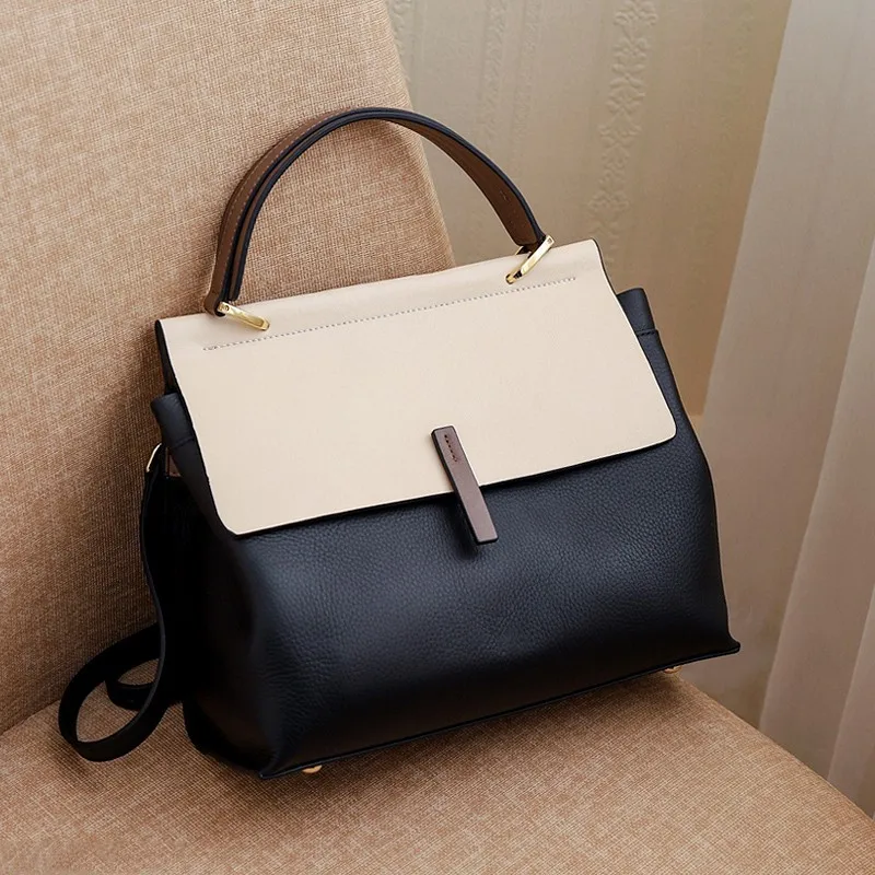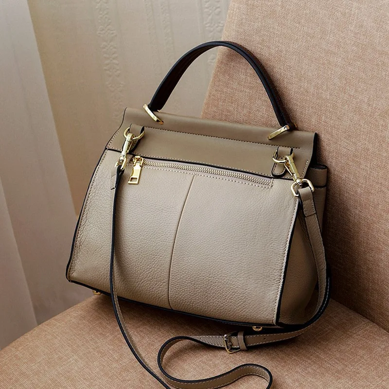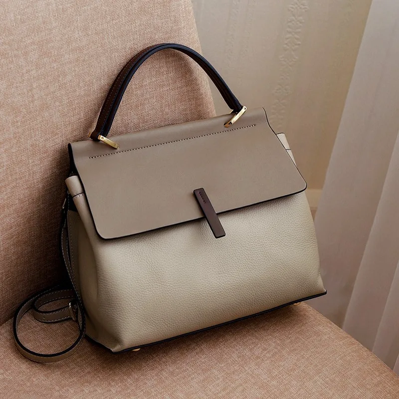 Офисная дамская сумочка из натуральной воловьей кожи, цветные деловые Офисные Сумки в стиле пэчворк, вместительные классические тоуты цвета хаки