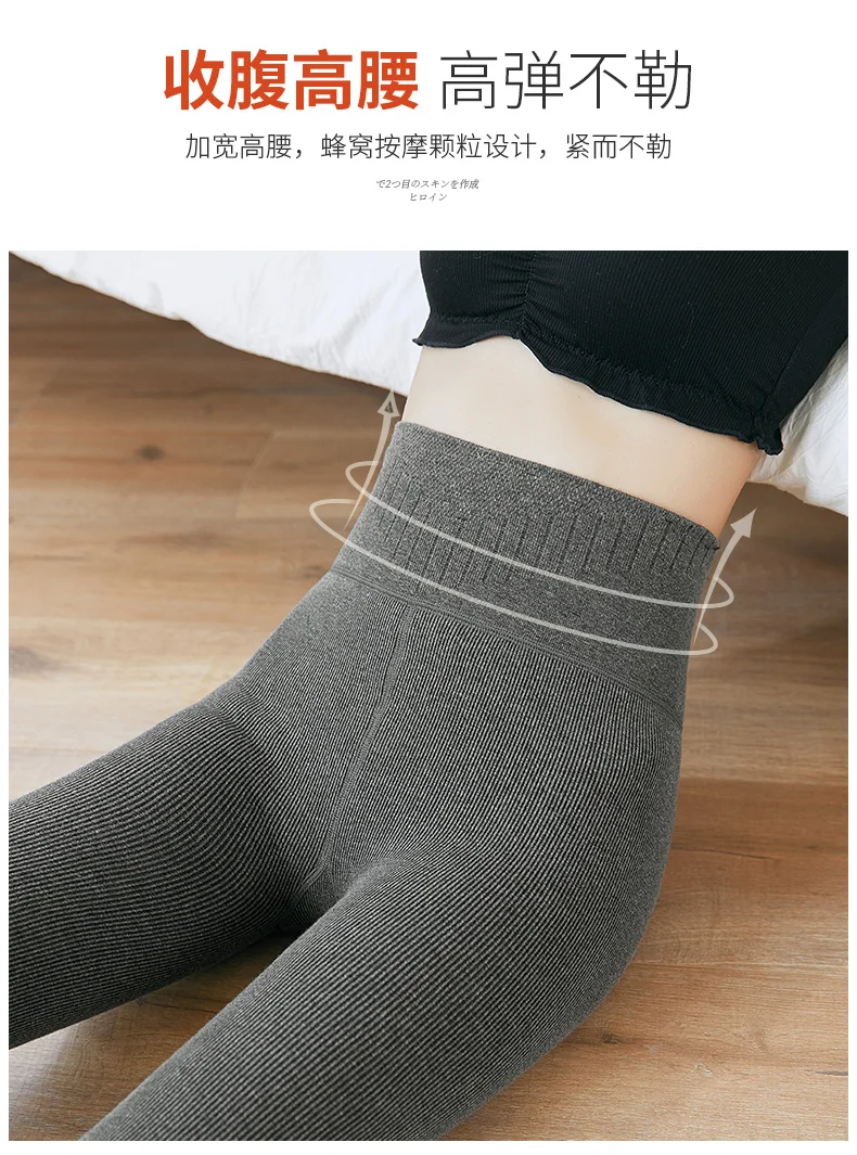 Леггинсы женские кашемировые, зимние, теплые, в полоску, с вышивкой и высокой талией